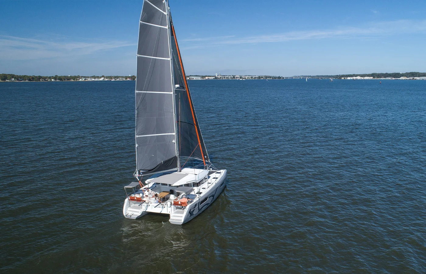 It’s not every day that you look at a catamaran and say, “Wow she’s seductive” — yet there’s nothing like the sight of an Excess 12 catamaran at full speed ahead with her unique lines, open-air layout, and sporty gray and orange sails. She’s one of a kind and recently delivered to first-time boat owners in Southern California.