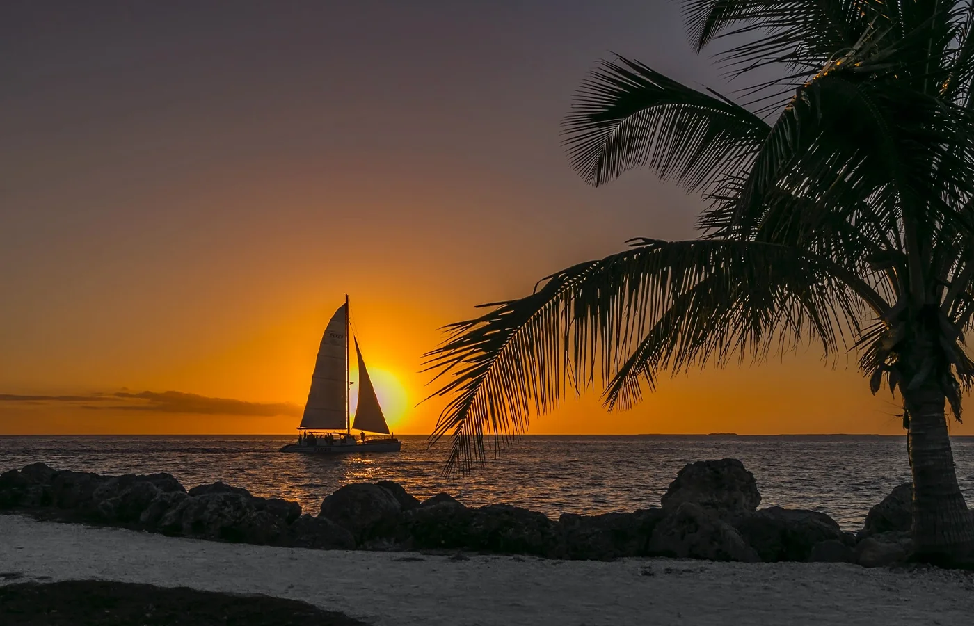 Key West is one of the best Florida yacht charter destinations. It’s a great spot for snorkeling through colorful coral reefs, enjoying incredible sunsets, and watching live entertainment. On land, guests can check out the local art galleries, boutique shops, seafood restaurants, and lively bars that give Key West a quirky edge. Head back to the catamaran as the sun goes down to catch one of the best sunsets in Florida. Nothing beats that orange Key West sky while enjoying a sundowner.