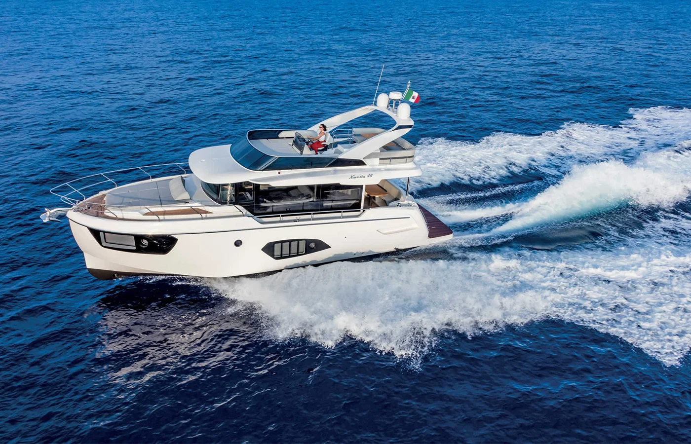Motor yachts are powered by single or twin engines — some equipped with two to four pod drives providing added maneuverability and joystick steering in close quarters. They can make voyages across oceans, zip through large rivers, or navigate the Great Lakes. Motor yachts are perfect for saltwater fishing, overnight boating, and day cruising and can be anywhere from 40 to 100 feet long. Motor yachts can range in price from as low as $90,000 to upwards of a few million — it just depends on if it’s new or used, size, model year, and amenities.