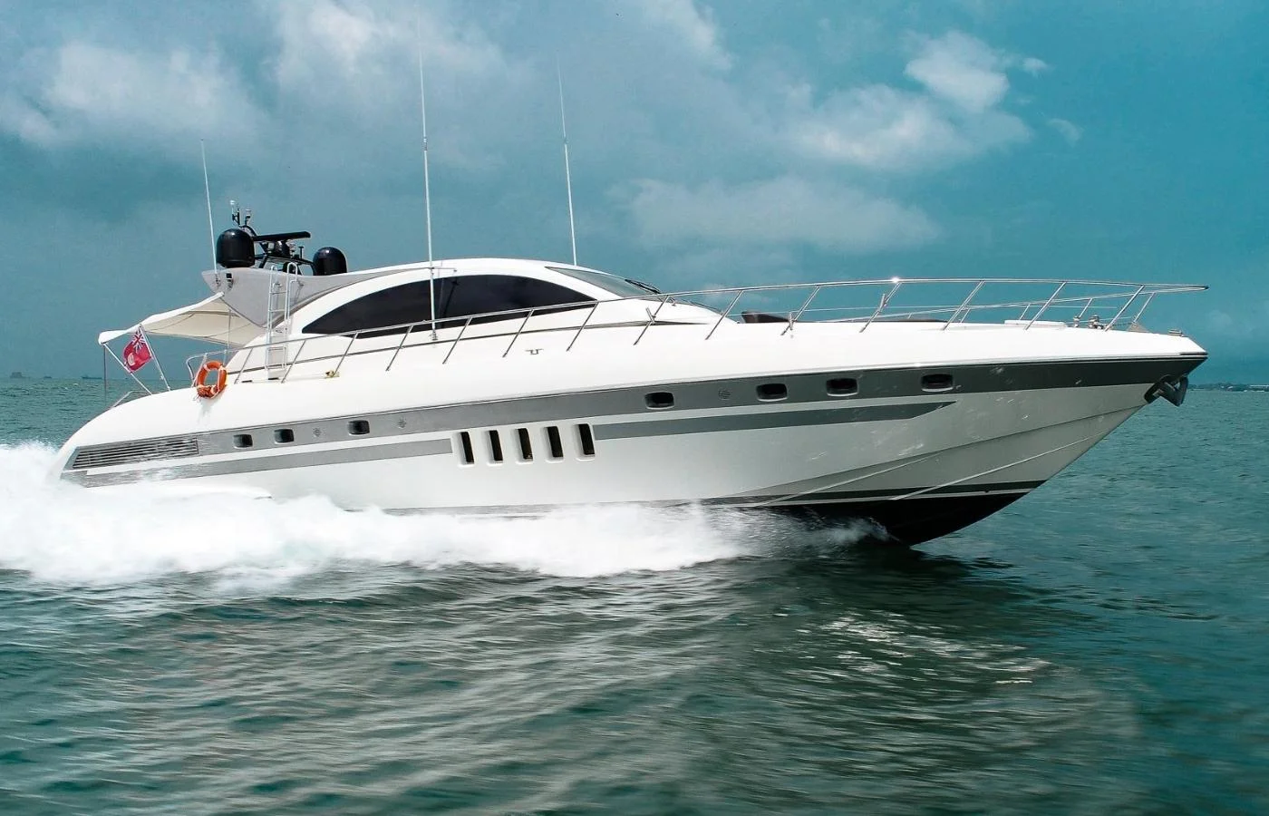Today, we’re on a big express, a 2004 Mangusta 72 hardtop, called Querencia. What makes this yacht special to any Mangusta 72 on the market, in 2015 her Arneson MAN 1550s were completely replaced. So you have 2015 engines with 500 hours with a top speed of 40 knots. All of her exterior upholstery was completely replaced. We’re going to go over more of her key features in this walkthrough, so let’s go get on board.