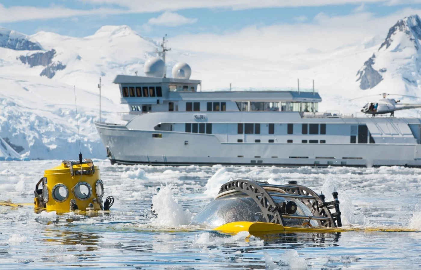 The Triton 13000/2 can reach depths of 13,000 feet underwater, deep enough to explore the Titanic wreck. Expedition yachts that come with a heavy lifting davit are ideal for launching submersibles into the water.