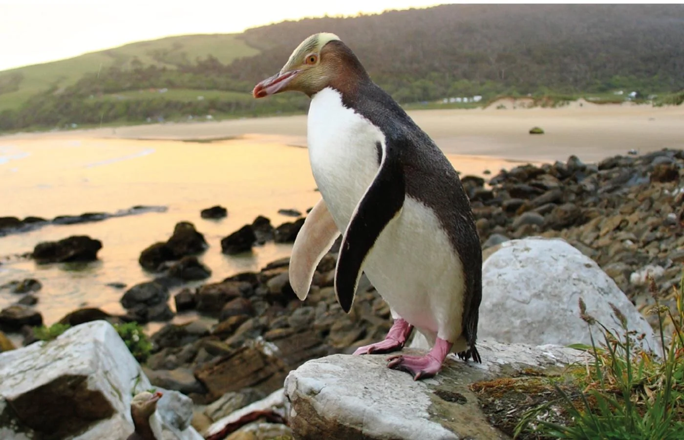 Yellow-eyed penguins are known for being shy. In fact, unlike other penguin species, they don’t nest within visual sight of each other.