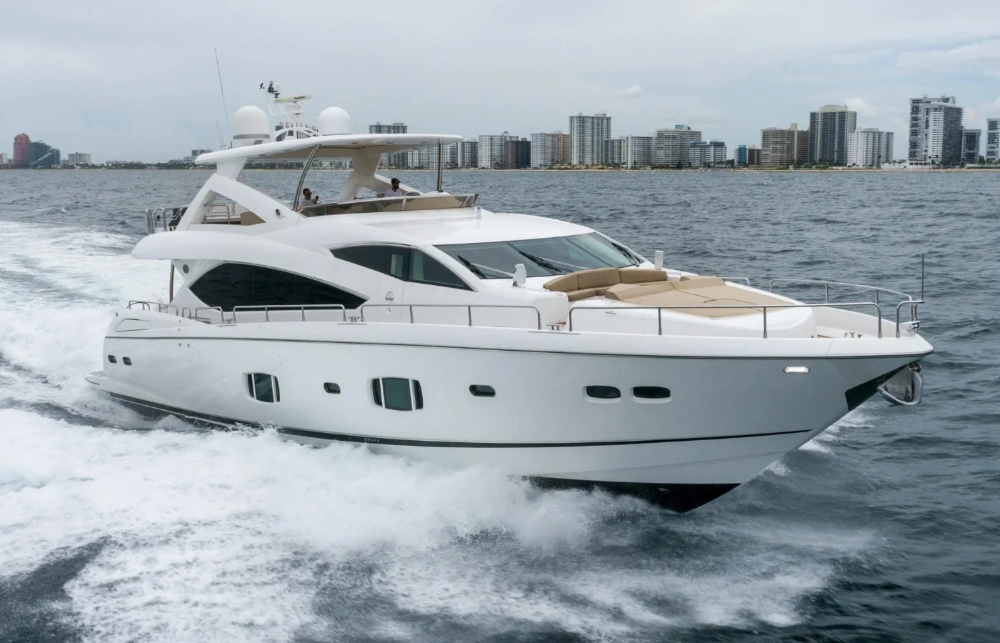 Hey everybody, Ryan Alexander with Denison Yachting. Today I am showing you a new listing offered by Denison broker Bruce Schattenburg. At 88 feet this Sunseeker Manhattan is so awesome. Looks great underway. In today’s footage you’ll be able to see that if you were facing north, you had nothing but blue skies and if you’re looking south, you get to see the storm and a completely different side of this boat.