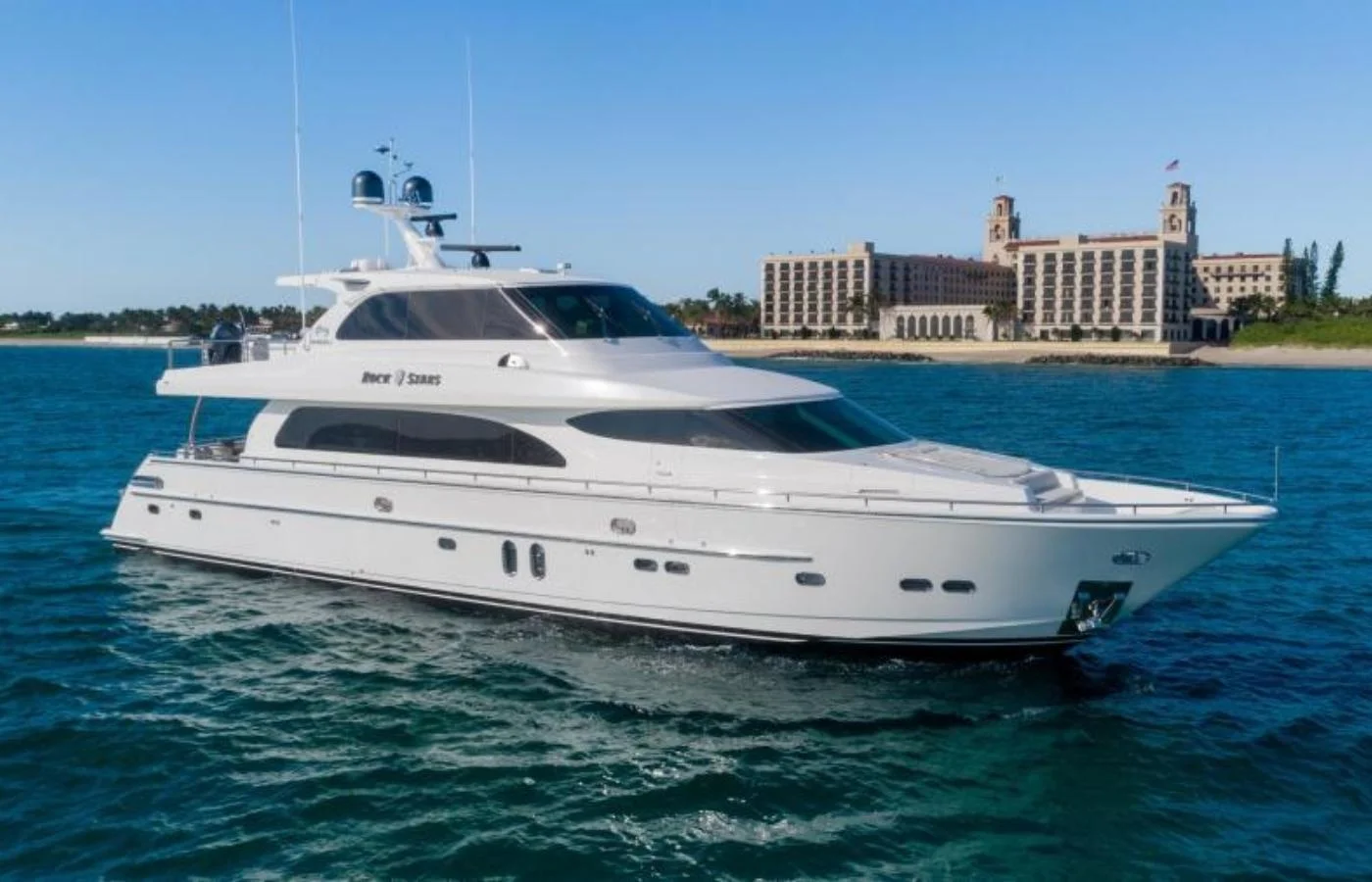 We’re here today to take you through an 84, 2017 horizon yachts called ROCK STARS. So Horizon yachts are built in Taiwan and one of the premier builders in Taiwan. And one of the reasons I love these boats is because they do everything in house for the most part. So all their woodworking is phenomenal. They’ve got the wood floors, and when you look around, the fit and finish and the soft goods on this boat are outstanding. So moving forward in front of the salon, what makes this boat super popular is that you have a country kitchen up forward where people like to congregate. You have a dining room table along with a lot of natural light. The great thing about this 80-foot yacht is it has four staterooms, five heads, and also two staterooms aft for crew. On close bridge boat, I find that the families all like to be together, the guests, the kids. You can come up here, you could watch TV while doing 20 knots. Hang out. And I find that people come together even while they’re traveling, as opposed to everybody being downstairs and the owner and the Captain being upstairs.
