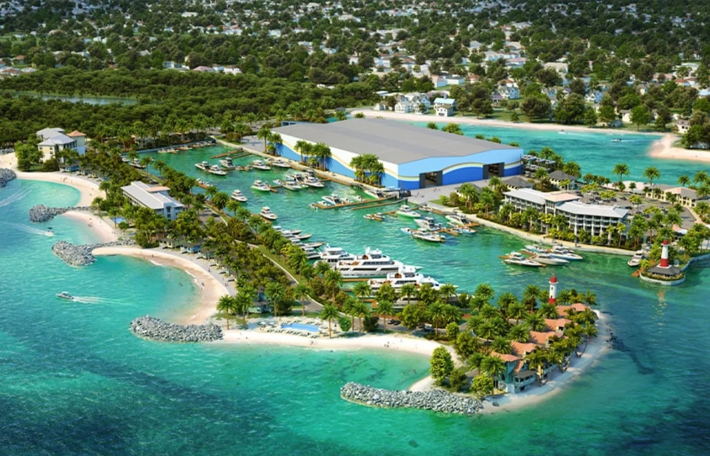 Conceptual rendering of Legendary Marina Resort project at Blue Water Cay in Nassau, Bahamas.