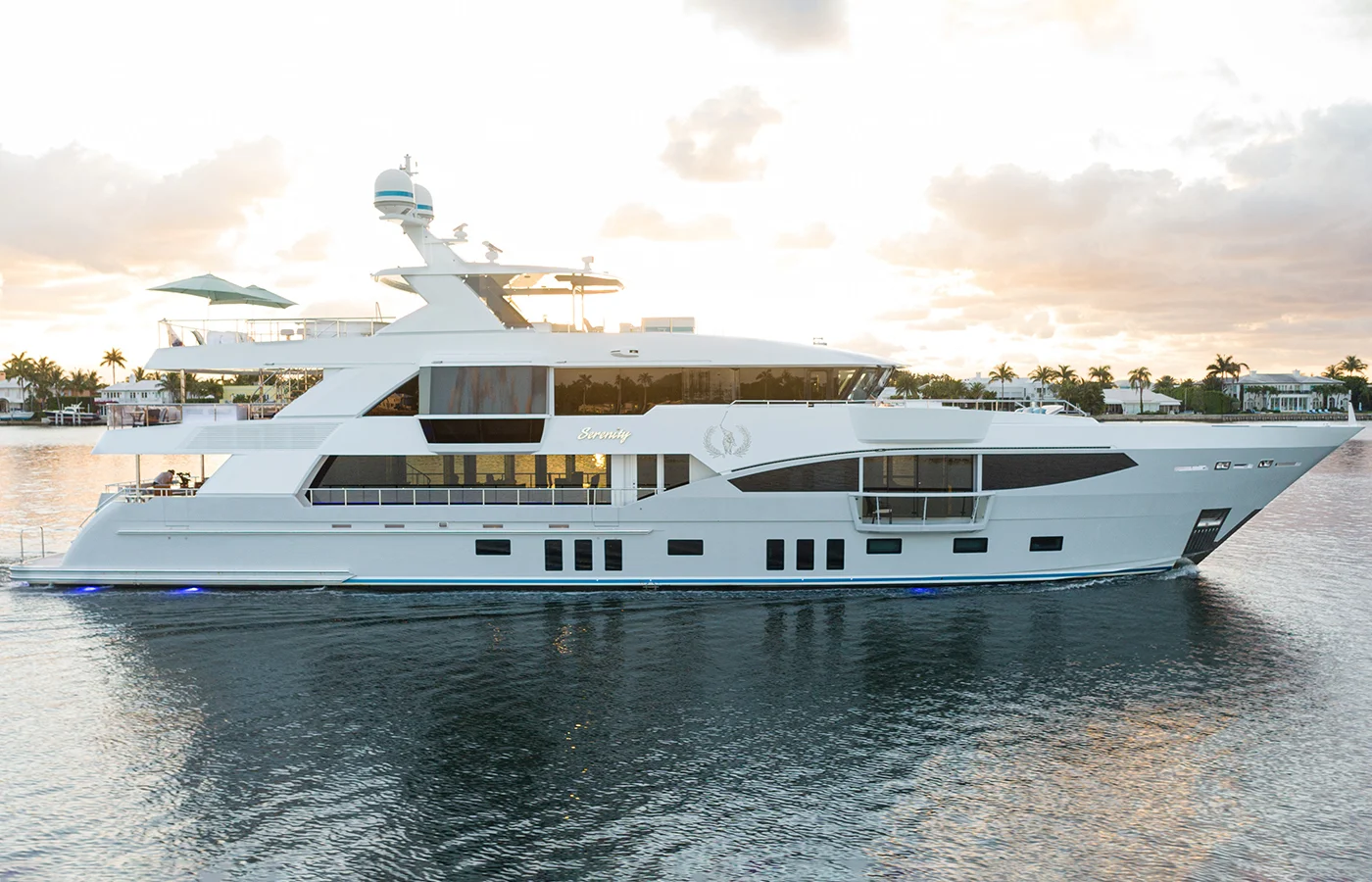 Check out this stunning, aptly named luxury yacht charter, SERENITY–a 133-foot IAG motor yacht that can accommodate up to 12 guests in six lavish staterooms. SERENITY is currently available for charter in the Bahamas and offers a truly luxurious vacation for all different types of guests–read on to see what makes SERENITY so special.