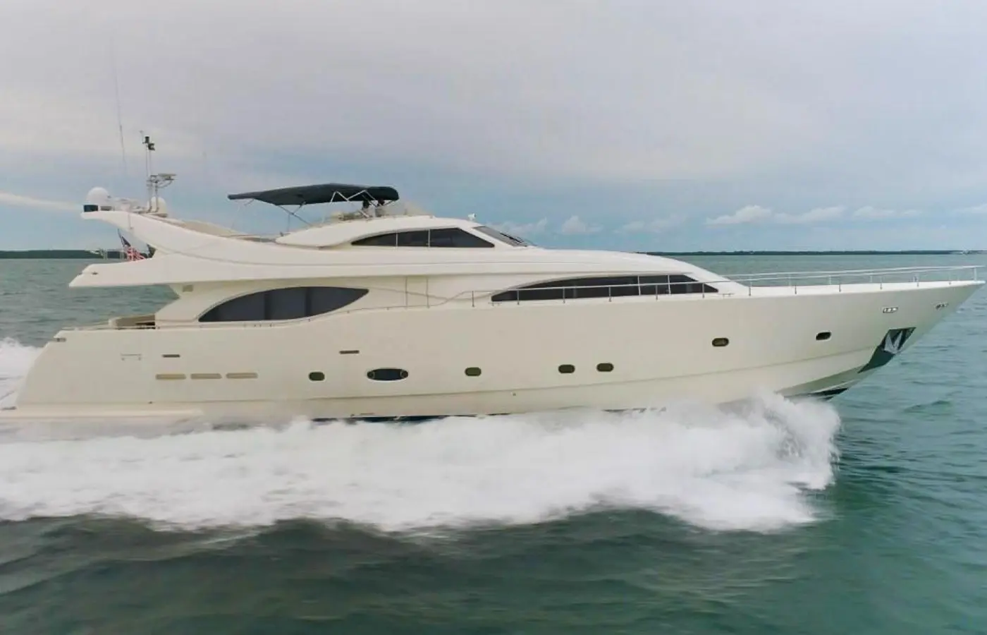 Ferretti Yachts is a brand that most people are familiar with. There is another brand within called Custom Line. And today, we’re in Key Largo checking out a 94 footer raised pilot house built in 2003, custom line Ferretti with zero speed fin and stabilization and a ton of other features like a beach club and an on deck master. Let’s go check her out. Welcome aboard.