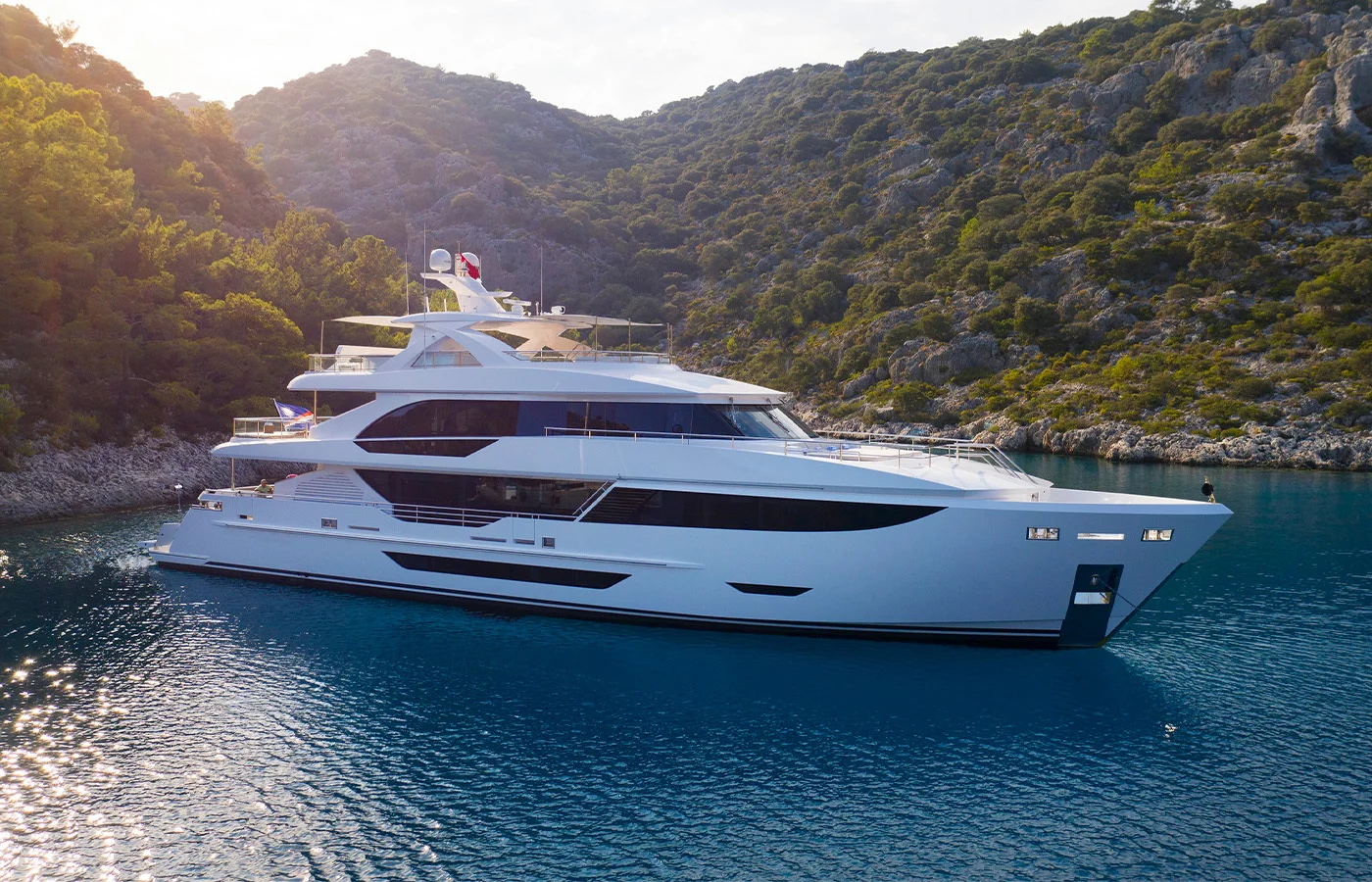 For the Caribbean vacation of a lifetime, discover ROMEO FOXTROT, a 116-foot Hargrave tri-deck superyacht that can accommodate ten guests in five luxury staterooms, including a full-beam master suite. ROMEO FOXTROT is currently available for charter in the Bahamas. I got aboard this charter yacht with Captain Chris to get a firsthand feel for this beauty–let’s dive in to discover her wide appeal.