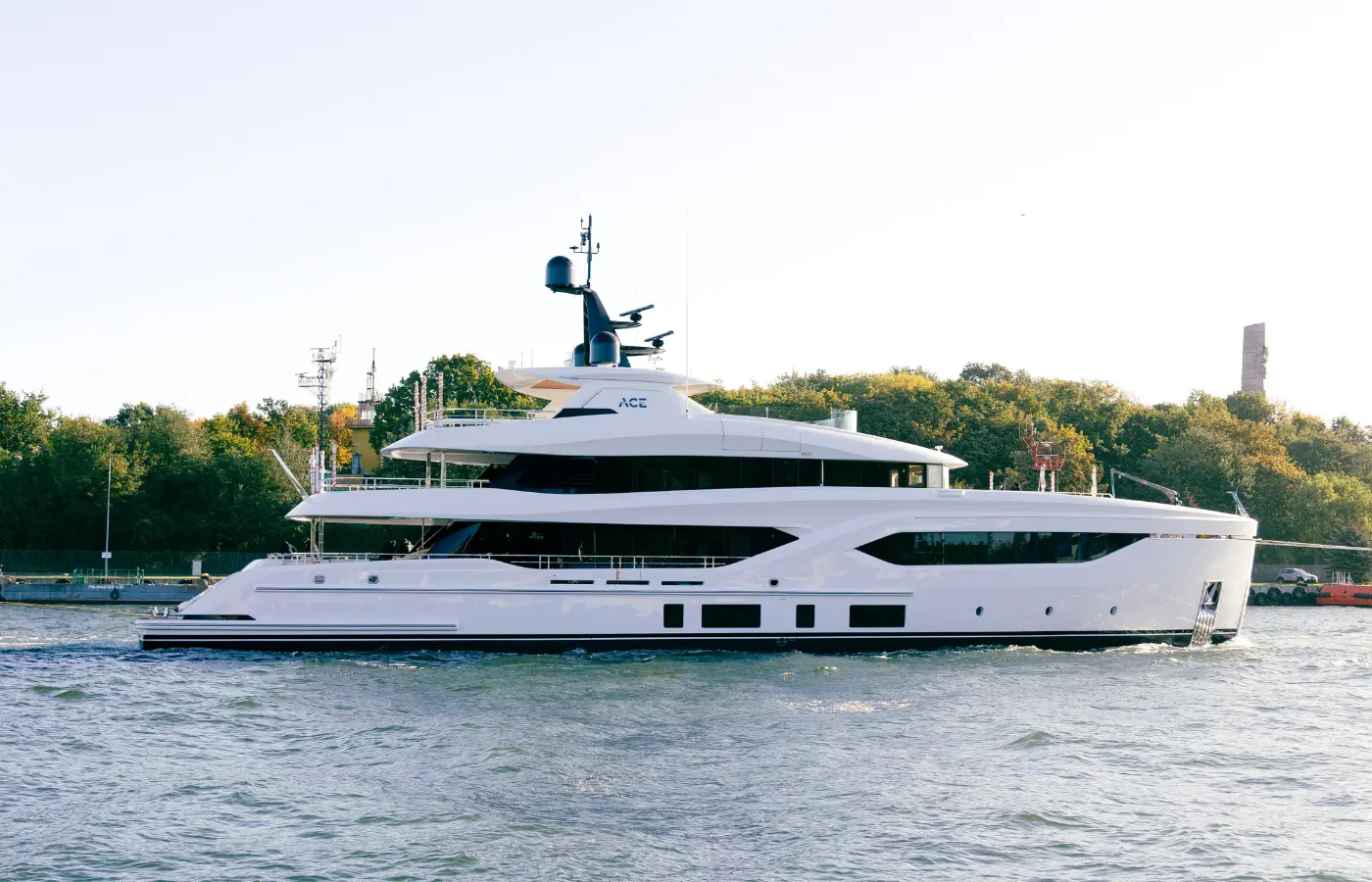 When you think of Champaign, you think of celebration, and today we’re celebrating ACE, the brand new Conrad C144S here in Poland. We’re not just celebrating a yacht; we’re celebrating so much more. We’re celebrating the delivery of a dream. We’re celebrating the workers and the countless hours that have gone into constructing the yacht. We’re celebrating the history of Conrad Shipyard and all the heritage you find here in Gdansk, Poland.