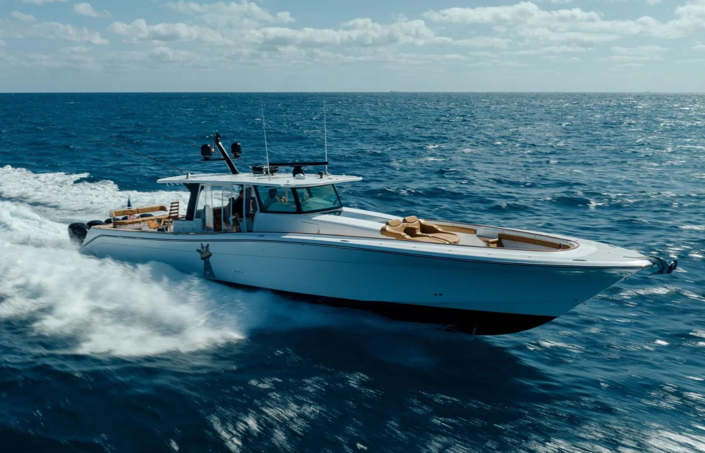 So in terms of performance, this particular Australia was powered with Quint 425, the most fuel efficient package that the Australia offered. This boat is capable of 26 knots cruising, and 42 knots wide open throttle with a very economical cruise speed.