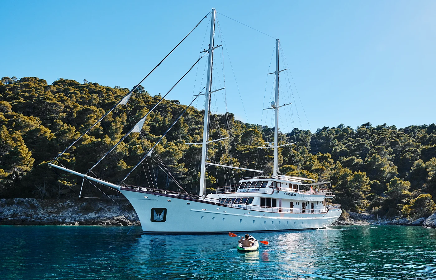 CORSARIO is a 48-meter sailing yacht available for charter in Croatia and Montenegro. This exceptional charter yacht offers a luxurious experience while guests explore the beautiful islands and charming seaside villages of the Croatian coastline. With a design inspired by a traditional tall ship and an elegant interior, CORSARIO is a sight to behold cruising the Adriatic Sea. The greatest reason guests love the charter experience on CORSARIO, however, is the phenomenal crew, who offer a genuine experience of their home country, Croatia.