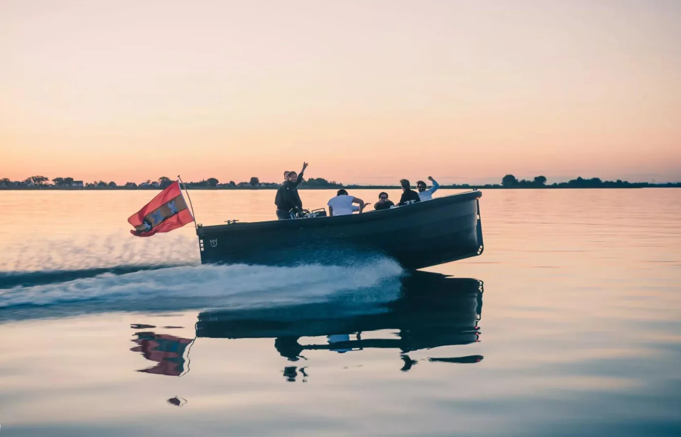 The experience of using this boat is insane. So I call it the wolf sheep closing, meaning it looks like a putt-putt boat, but it is a go-kart, a race cart on the water. It sticks to the water when you turn so fast that even the black fender can touch the water.