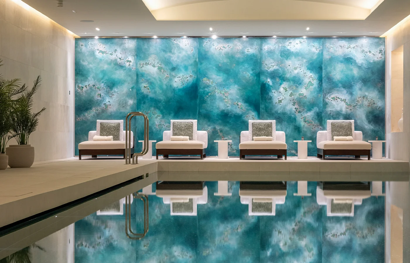 Many Reymond Langton-designed yachts enjoy a large proportion of integrated art in all areas of the yacht interior. They commission many different artists and artisans, such as leather carvers (Bravo Eugenia saloon), handwoven silk tapestry (Artefact VIP stateroom), and painted and embroidery panels (staterooms in H3 and Aviva).