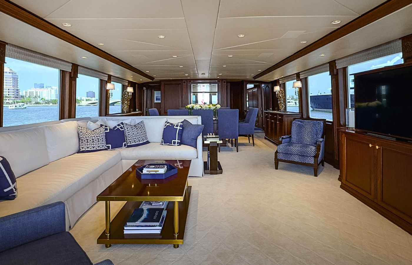 SHARON LEE has been expertly owned and maintained by an experienced yachting family since 2019, undergoing extensive refits to modernize while preserving her classic style. Accommodating up to eight guests in four staterooms and four crew, she offers elegance and comfort. Highlights include a new flag blue hull paint job, walk-around decks, CAT engines, Atlas shore power, a custom hardtop, hydraulic passerelle, 4,000 lb davit, Koopnautic stabilizers, a spacious country-style galley, and an impressive 22’11” beam.