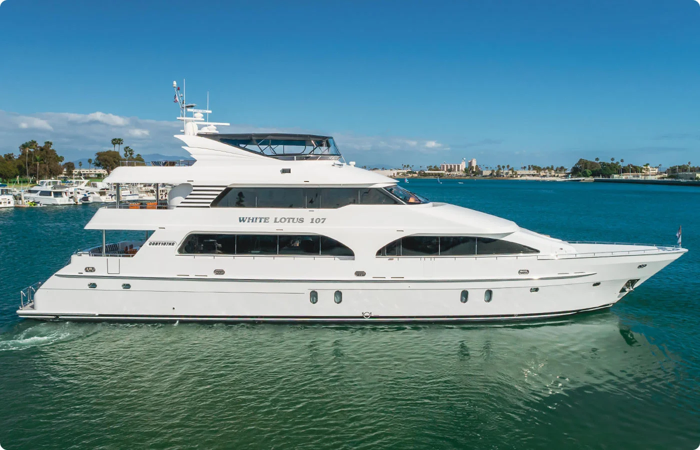 Denison is pleased to present WHITE LOTUS, a 107-foot tri-deck motor yacht built by President Yachts in 2011. Currently located in San Diego, California, this yacht has been captain-maintained and recently benefited from a comprehensive refit in 2023. She features low engine hours (approximately 1,775) and a flexible 5-stateroom layout, with accommodations for guests and crew alike.