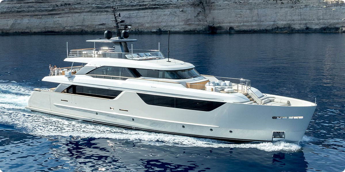 The Majesty 100 Terrace is one of Majesty Yachts’ most celebrated models, blending sleek design, bold presence, and advanced technology. With a striking silhouette and 199GT of elegance, this superyacht delivers both refined style and innovative engineering. Built for performance and efficiency, the Majesty 100 Terrace cruises smoothly in destinations like the Mediterranean and Caribbean. A 20% increase in entertainment space makes her ideal for social gatherings, while expansive skylights and floor-to-ceiling glass create a bright, seamless indoor-outdoor flow.