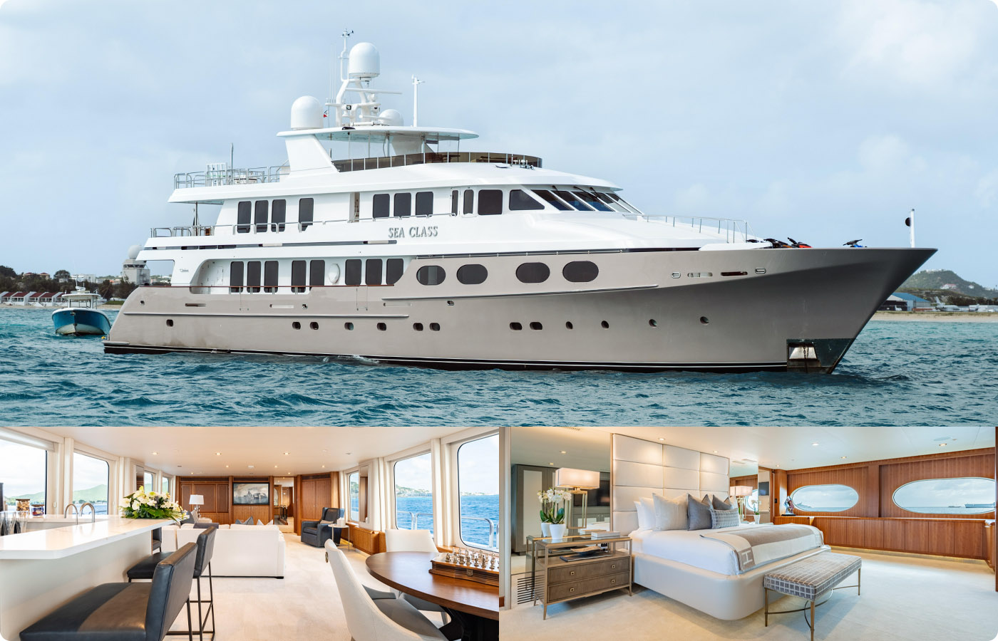 SEA CLASS sleeps 12 guests in 6 staterooms, with an expansive on deck, full beam master suite with his and hers ensuite bathrooms. Three accommodations include a bonus cabin on the main deck that is perfectly suited for a caregiver or young children.