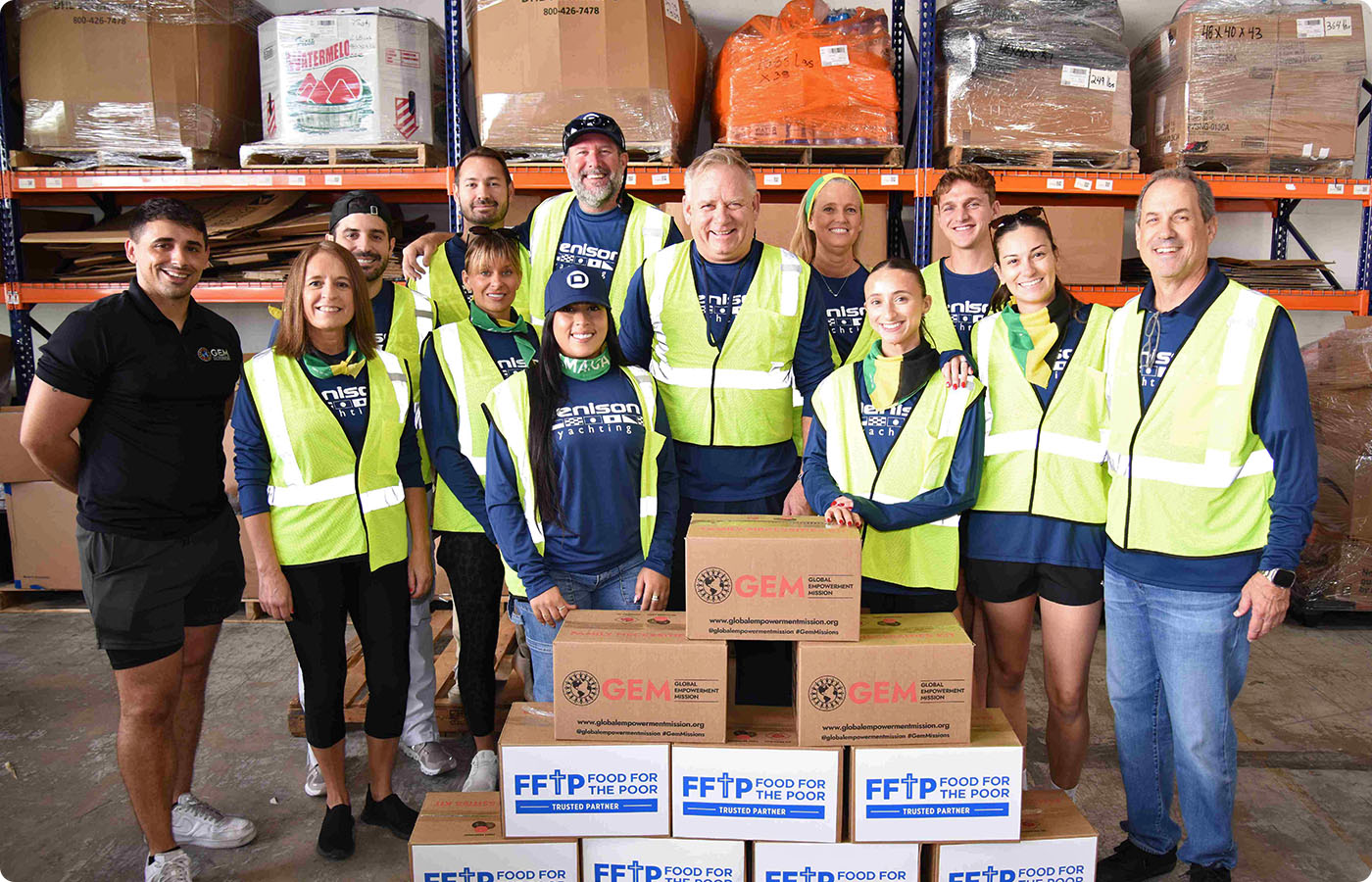 Following our Hurricane Melissa relief fundraiser and donation drive, the Denison Yachting team took the next step on December 16 by volunteering in person with Global Empowerment Mission (GEM) at their headquarters in Doral, Florida.