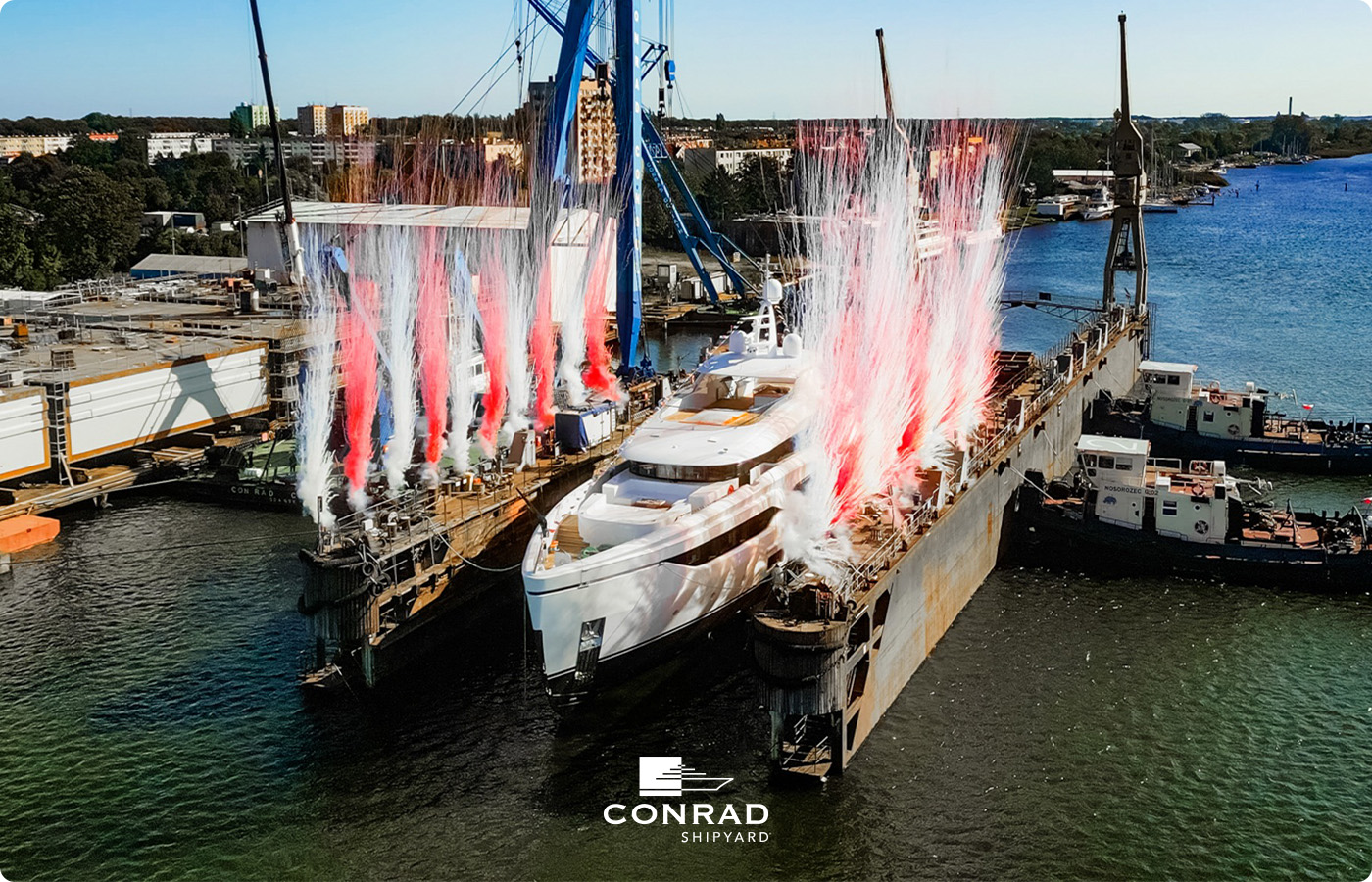 Conrad Shipyard is located in Gdańsk, Poland. The shipyard is known for building high-quality superyachts and has gained international recognition for vessels like the award-winning VIATORIS (winner of the 2019 World Superyacht Awards) and ACE (winner of the 2023 World Superyacht Award Judge’s Commendation and multiple design awards in 2024).