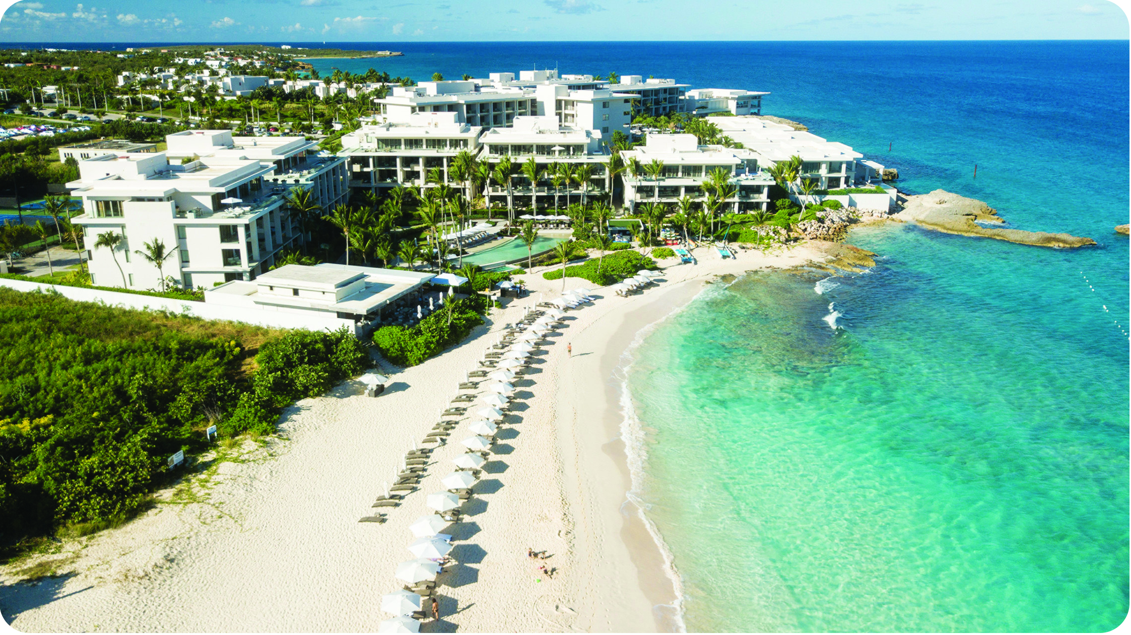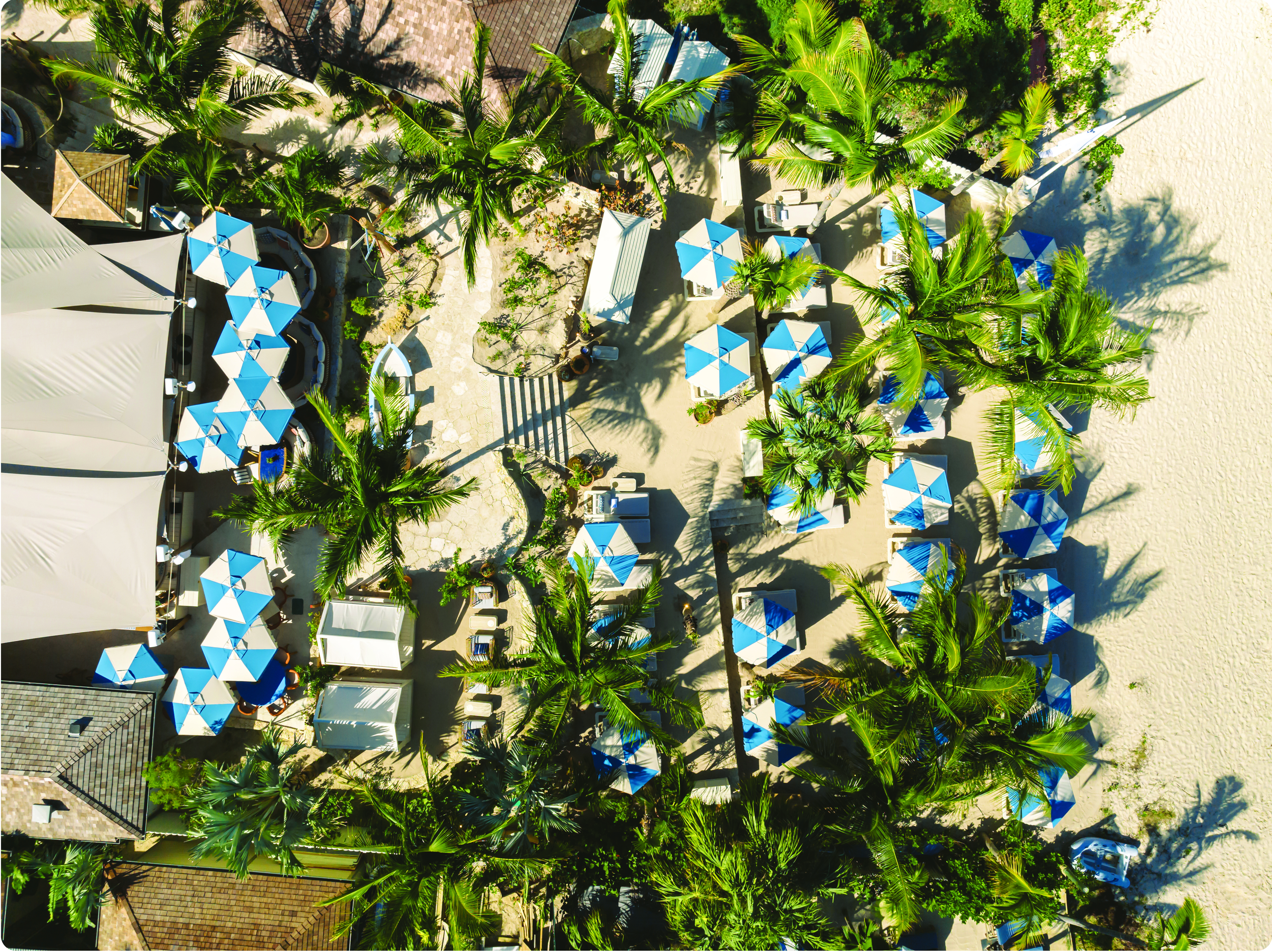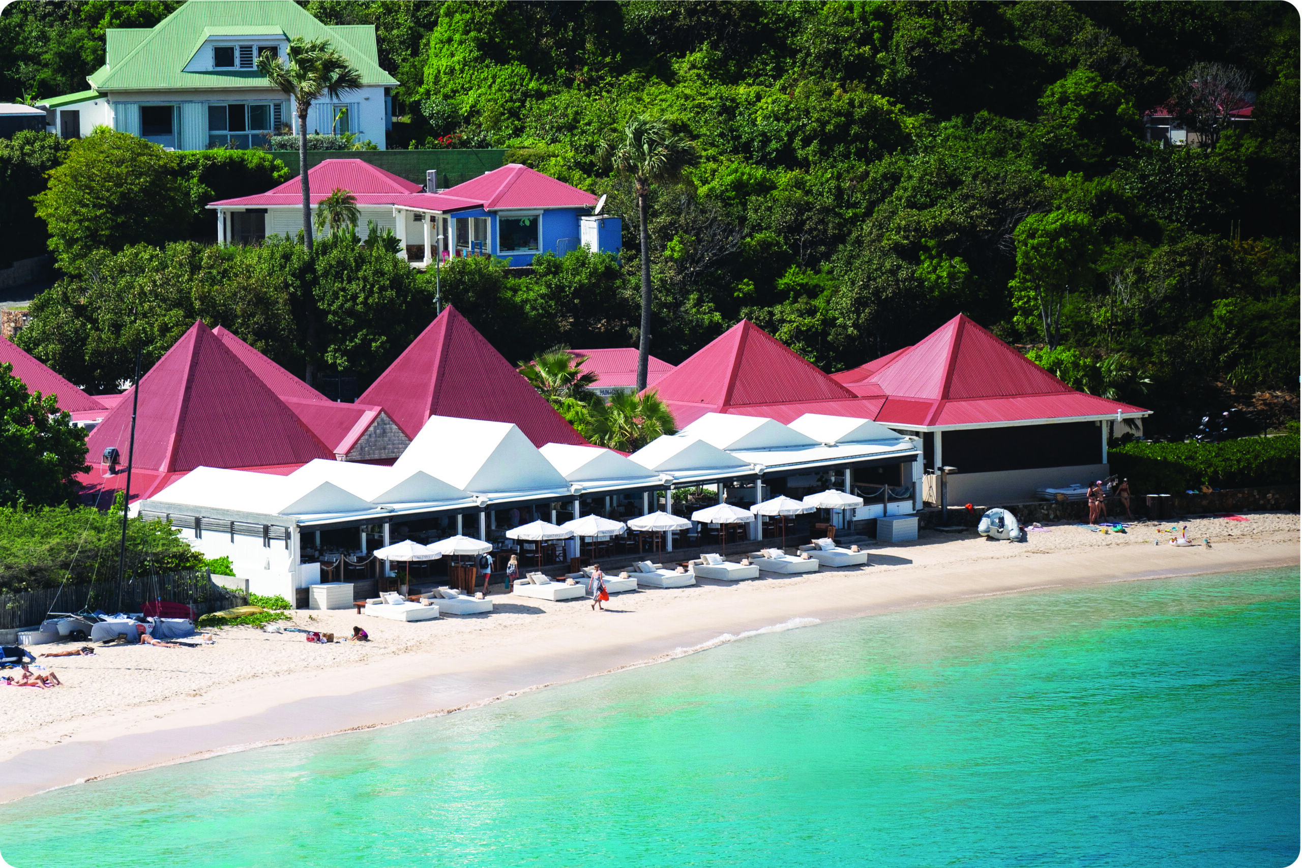 La Guérite in St Barth’s Saint-Jean Bay anchored in spring 2023 as a complement to the Gustavia Harbor sister and extension of the famed Cannes spot. Ideal for stylish beachside lunches and vibrant gatherings, the beach club and restaurant feature chic tropical-inspired design by Caprini & Pellerin with palm tree-shaded parasols and vibrant décor. The menu, crafted by Greek chef Yiannis Kioroglou, harmonizes Mediterranean and Caribbean flavors—think grilled fish and lobster, burrata with tomatoes, and La Guérite’s signature pasta. Open daily from 10:30 AM, the venue invites guests to book loungers or private cabanas on the beach or tables at the restaurant and lounge bar where creative mixology complements upbeat tunes.