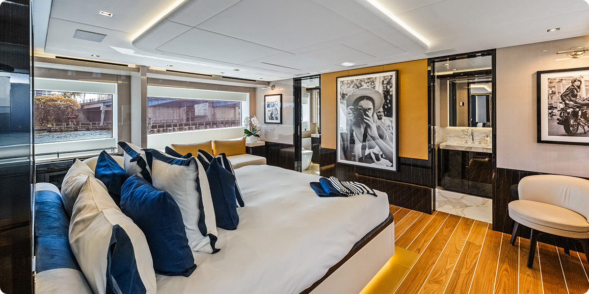 ARTEMIS accommodates up to 8 guests overnight across 4 staterooms. The yacht has five cabins total, and guests can select which four best suit their group configuration.