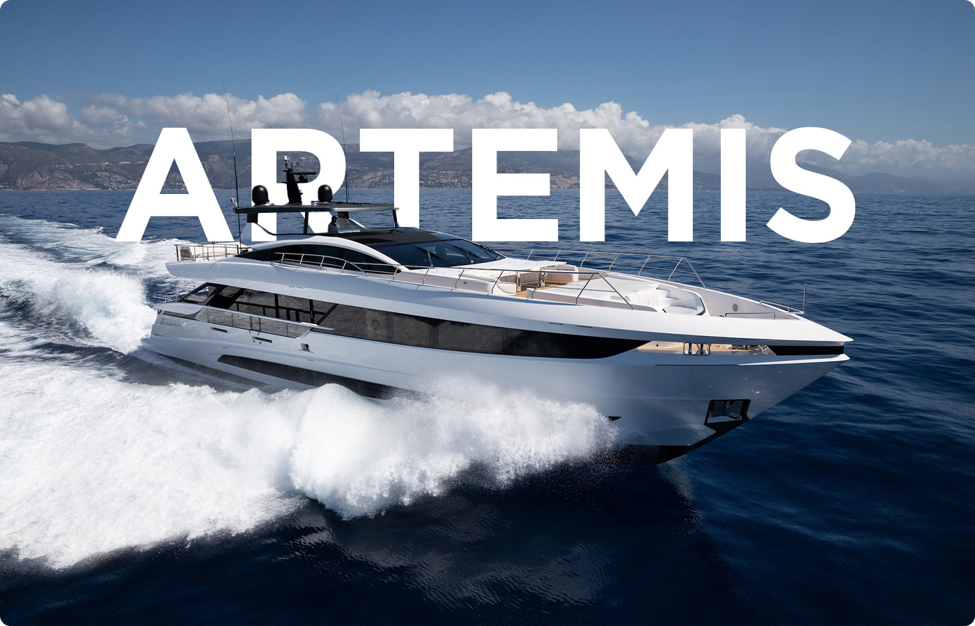 ARTEMIS is a 108-foot Mangusta sportyacht built in 2021 and updated in 2023. Mangusta is an Italian yard known for high-performance open and sportcruiser designs, with a strong presence in the mid-size and large superyacht segment.