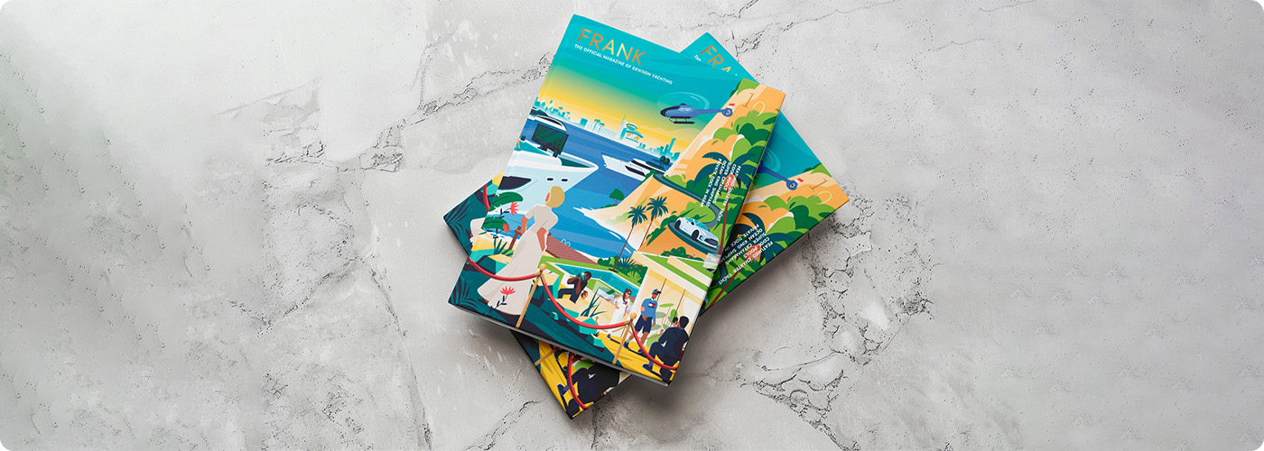FRANK is all about getting to the heart of the matter. Its pages uncover the human interest stories that give yachting its passion and breathe new life into clever ideas. We highlight the humble, celebrate entrepreneurial spirit, and showcase daring adventures. It’s about capturing the raw energy and natural flair that exists within every Denison yacht owner today, and echoes the sentiments held by Frank Denison, founder of Broward Marine. From intelligent debate to cutting-edge science, and risky sports to surreal charter experiences, FRANK does not shy away from the awkward, controversial or questionable. There is no glossing over of the finer details. Brazen at times, amusing in spirit, and always transparent in discussion, the focus in on discovering new angles and enjoying every minute. And, of course, always be ‘frank’ about the conclusions.