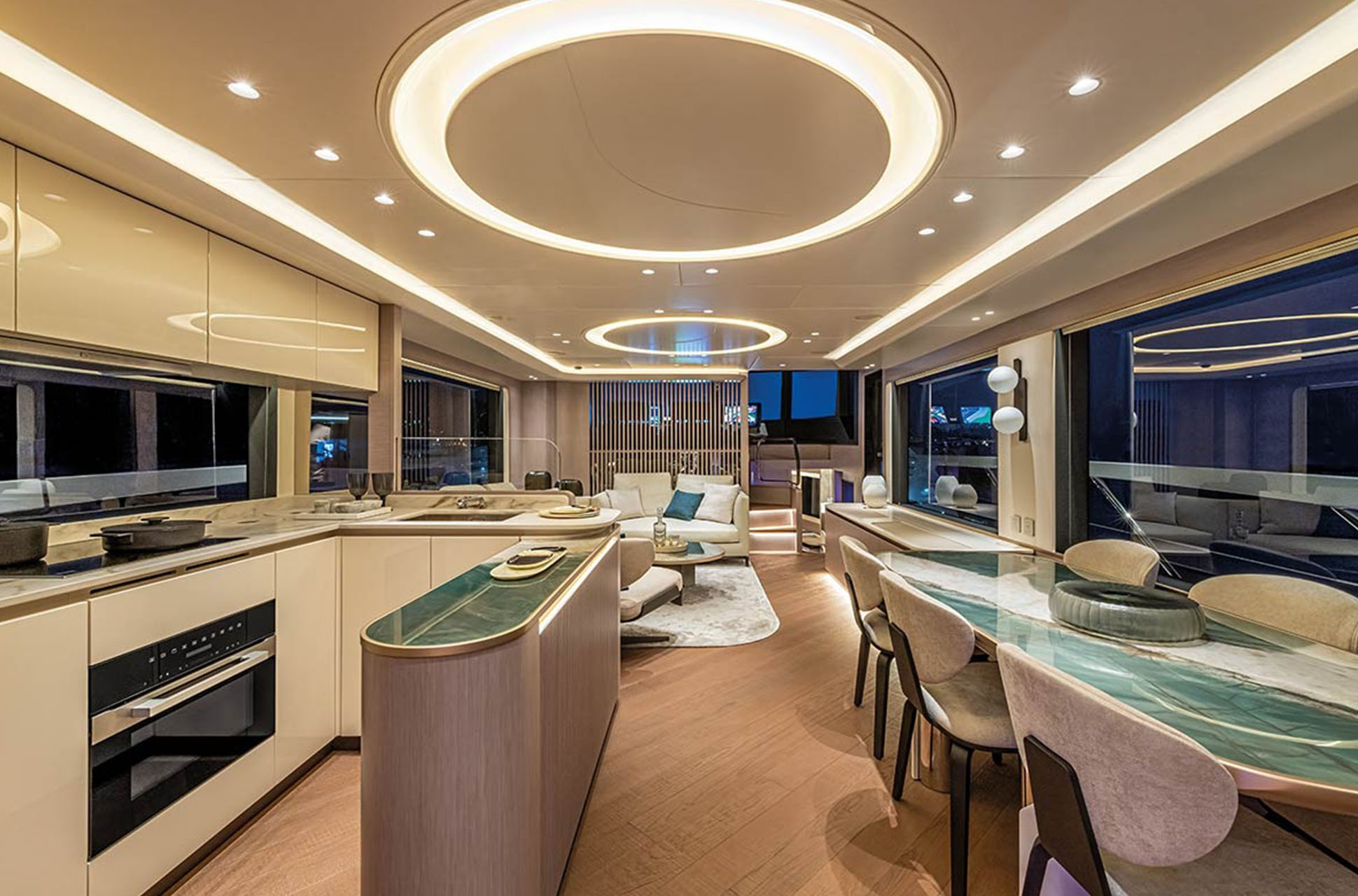 The Absolute Navetta 70 (The Absolute Allure) is designed to deliver “big yacht” livability with a layout that feels bright, open, and easy to move through. Absolute leans into the brand’s signature sense of space with high ceilings, expansive windows, and space-saving sliding doors, plus minimal steps throughout so the boat feels comfortable and natural to live on day to day.