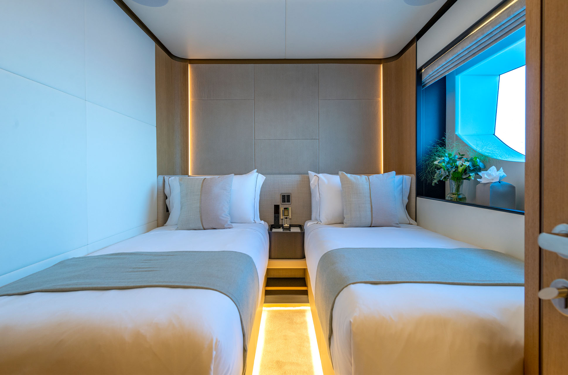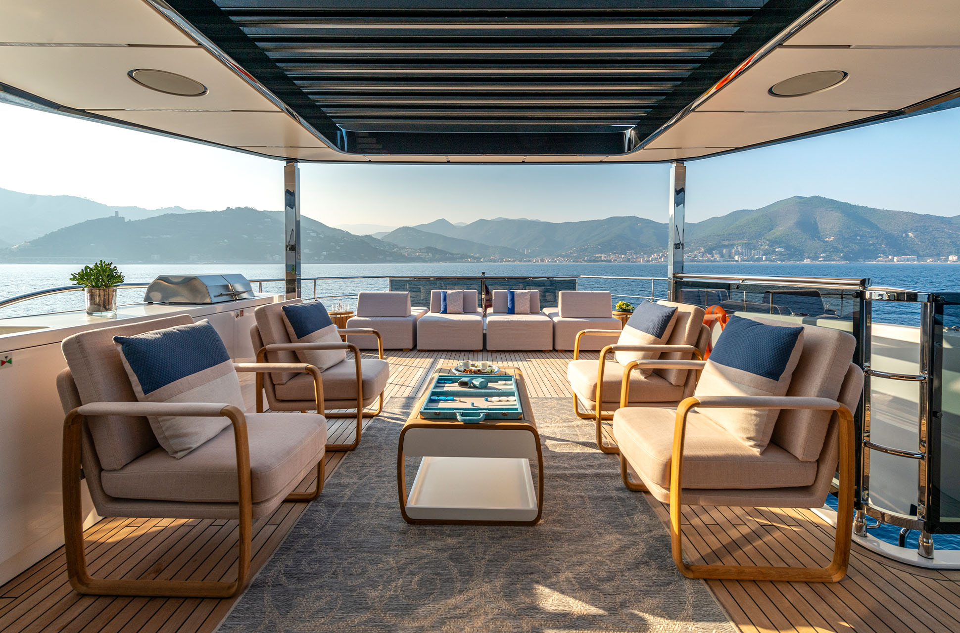 Powered by Gulf Craft’s semi-displacement hull, the Majesty 111 delivers spacious volumes without compromising performance. Its “mid-century modern” design language blends style and function, offering strong adaptability for private owners and the charter market alike.