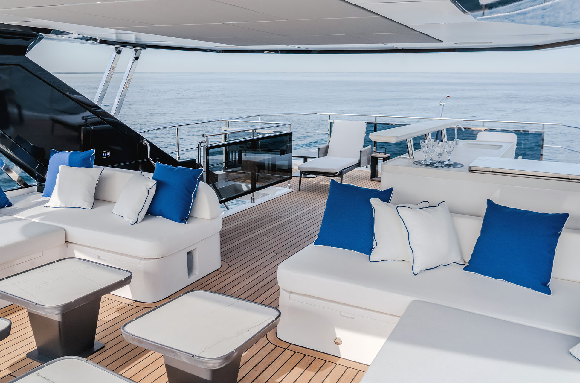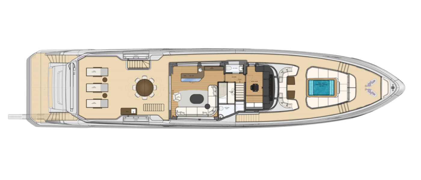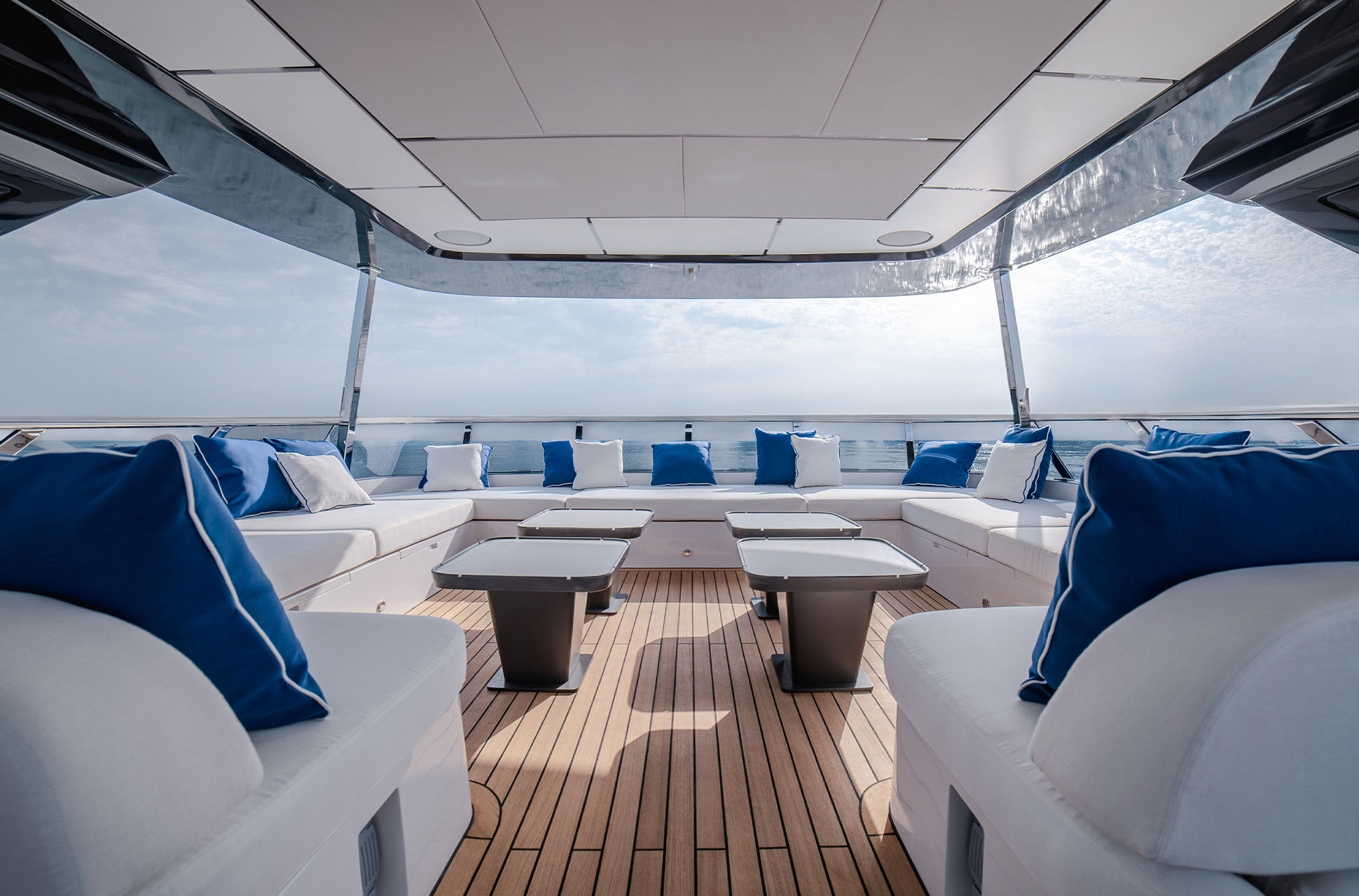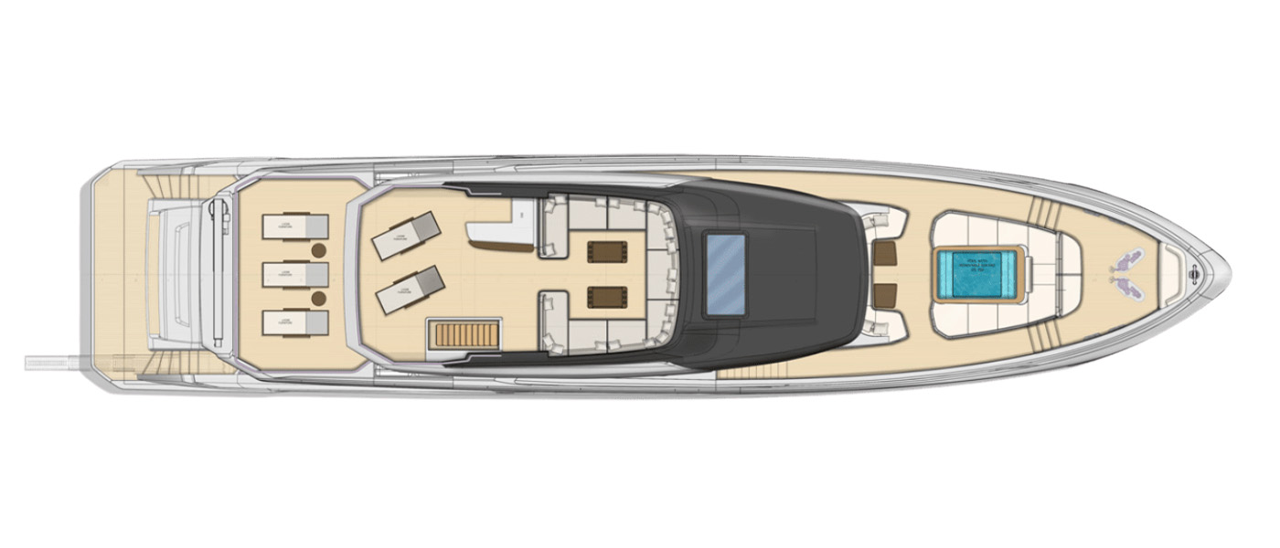 Designed to host up to 12 guests and 6 crew, the Majesty 112 Terrace offers multiple alfresco dining and lounging areas, along with a spacious salon flooded with natural light. Every detail, from curated materials to refined finishes, enhances comfort and style.