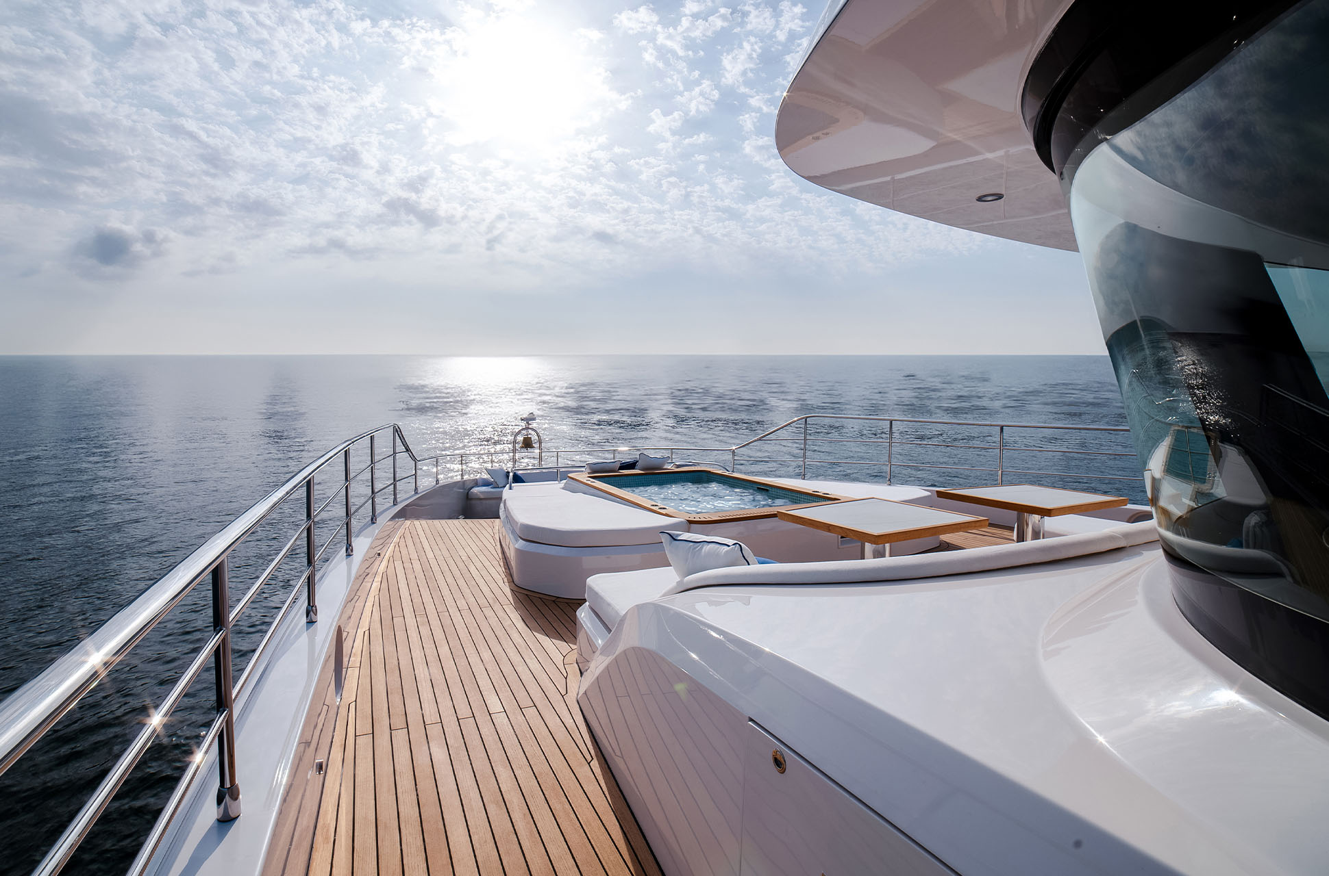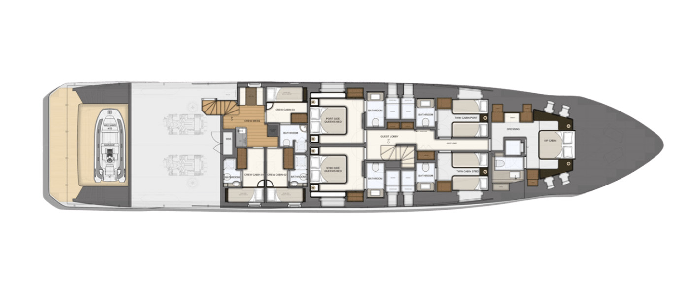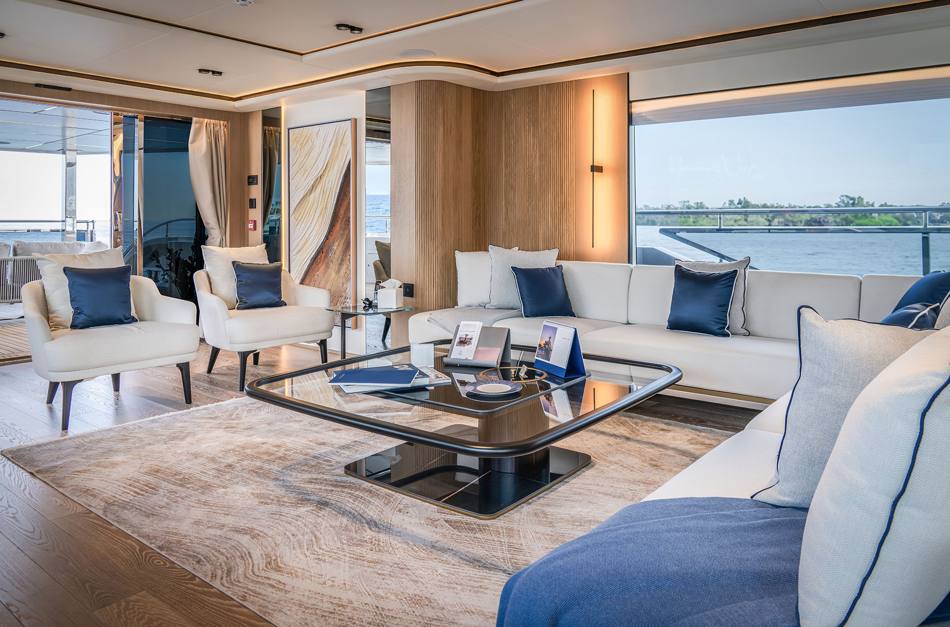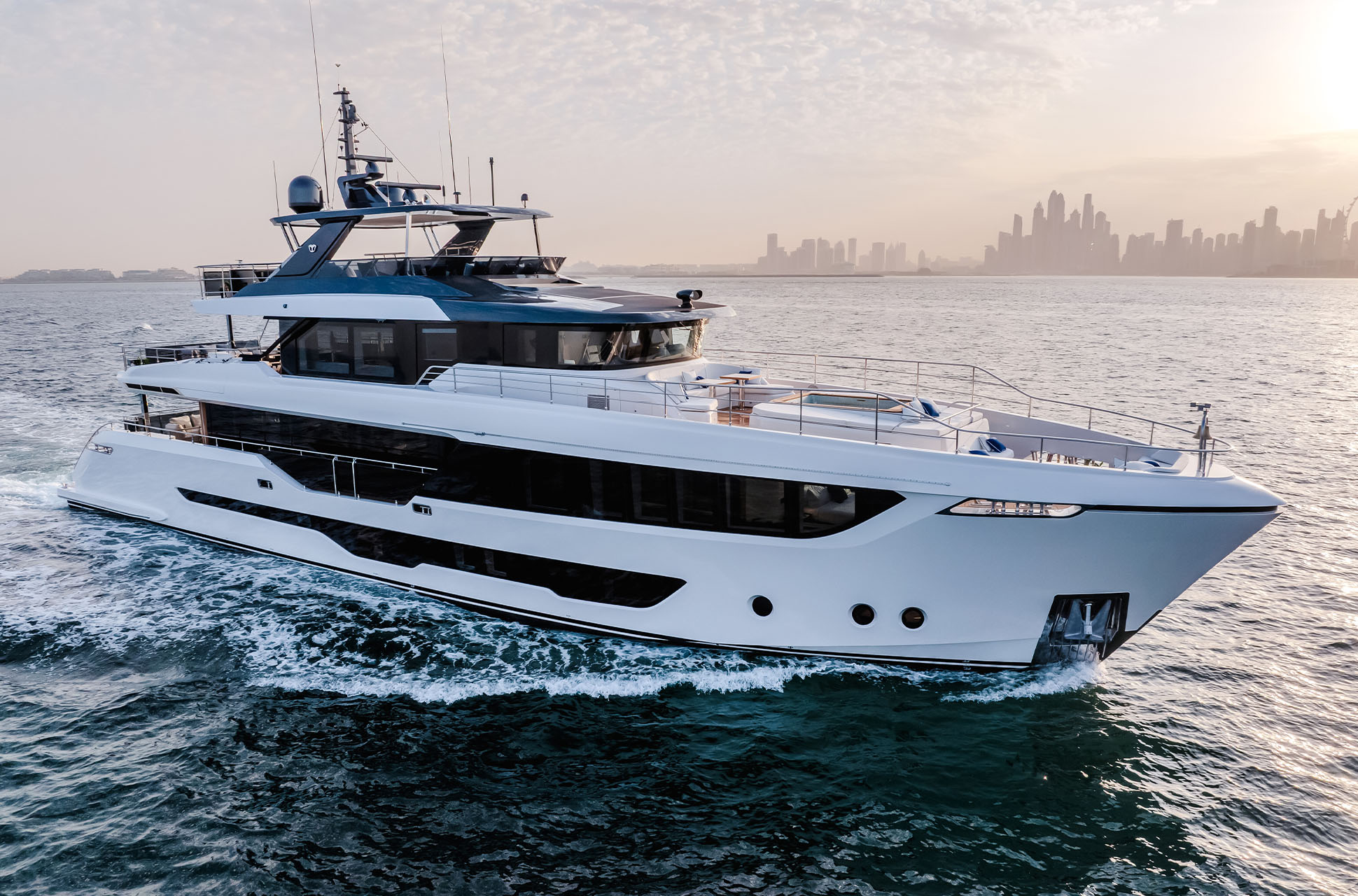 Designed to host up to 12 guests and 6 crew, the Majesty 112 Terrace offers multiple alfresco dining and lounging areas, along with a spacious salon flooded with natural light. Every detail, from curated materials to refined finishes, enhances comfort and style.