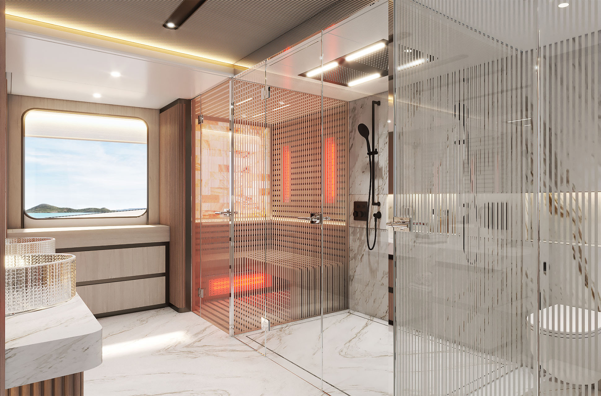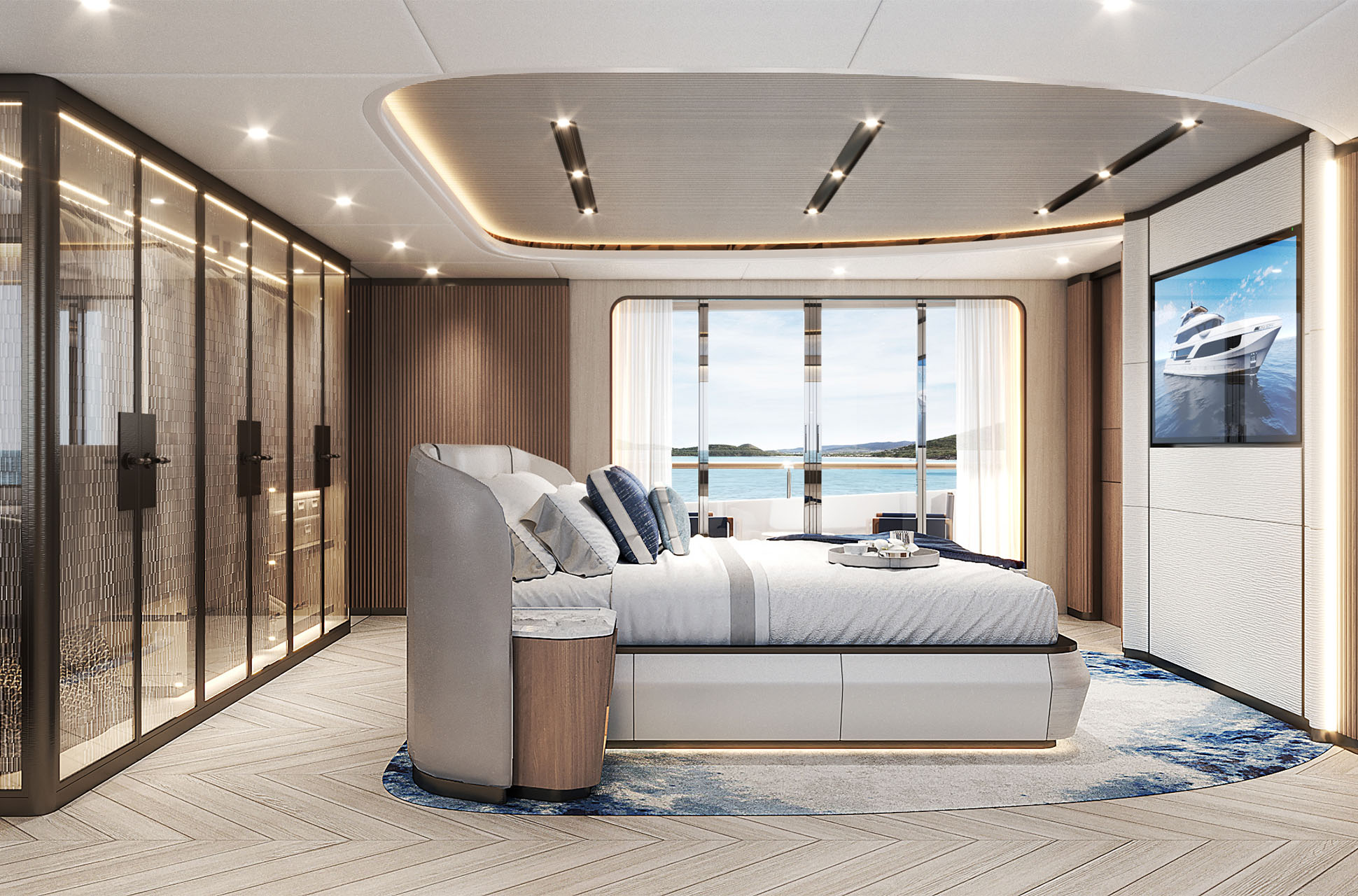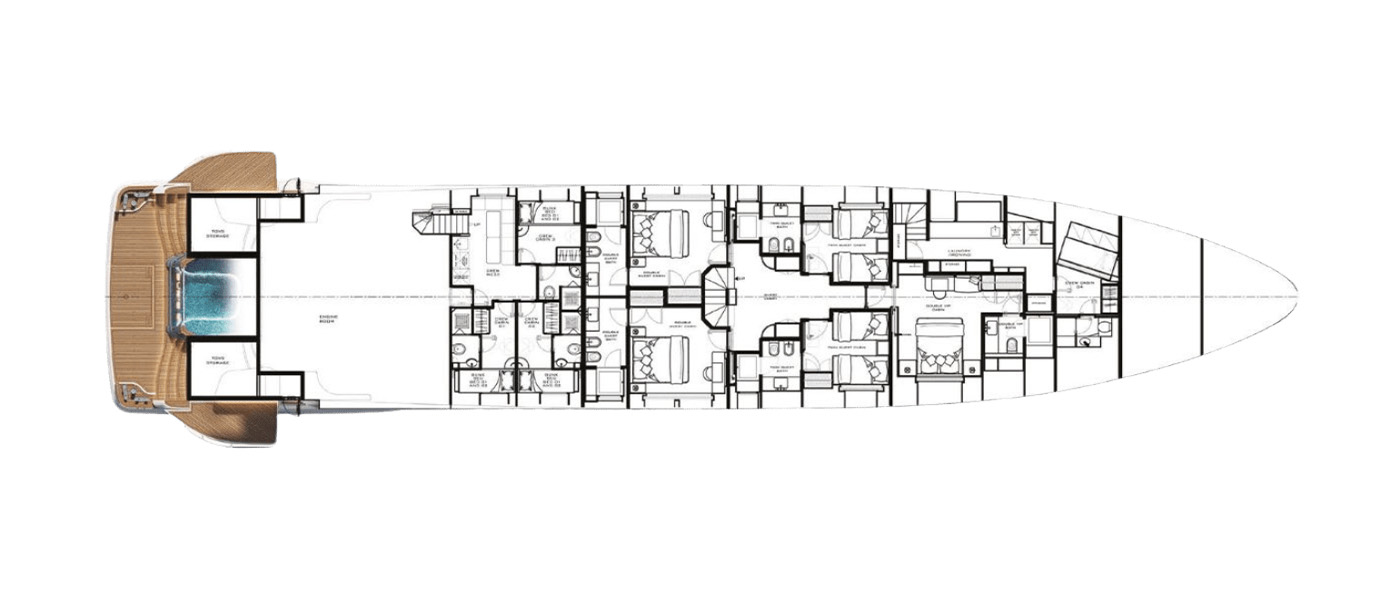 The Majesty 145 is a triumph of innovation and craftsmanship, designed to immerse guests in the surrounding seascape. Floor-to-ceiling glazing, glass balustrades, and extended terraces maximize natural light and panoramic views, while seamless indoor-outdoor connections create an atmosphere of continuous flow. Expansive decks provide generous areas for sun or shade, striking the perfect balance between comfort and open-air living.