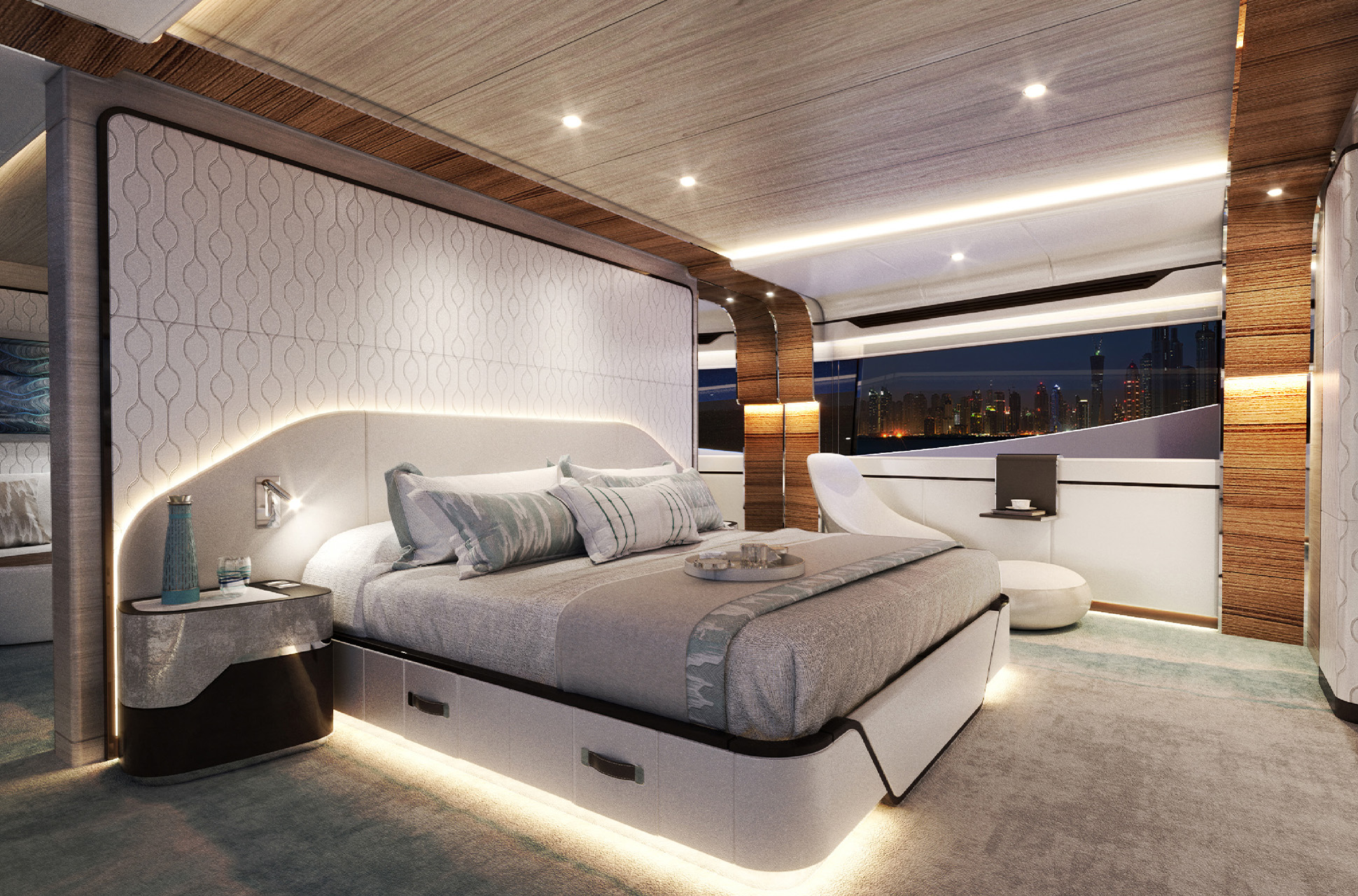 The Majesty 160 accommodates up to 12 guests across seven luxurious staterooms, including a stunning owner’s suite, and provides quarters for nine crew with five large cabins plus a private captain’s accommodation.