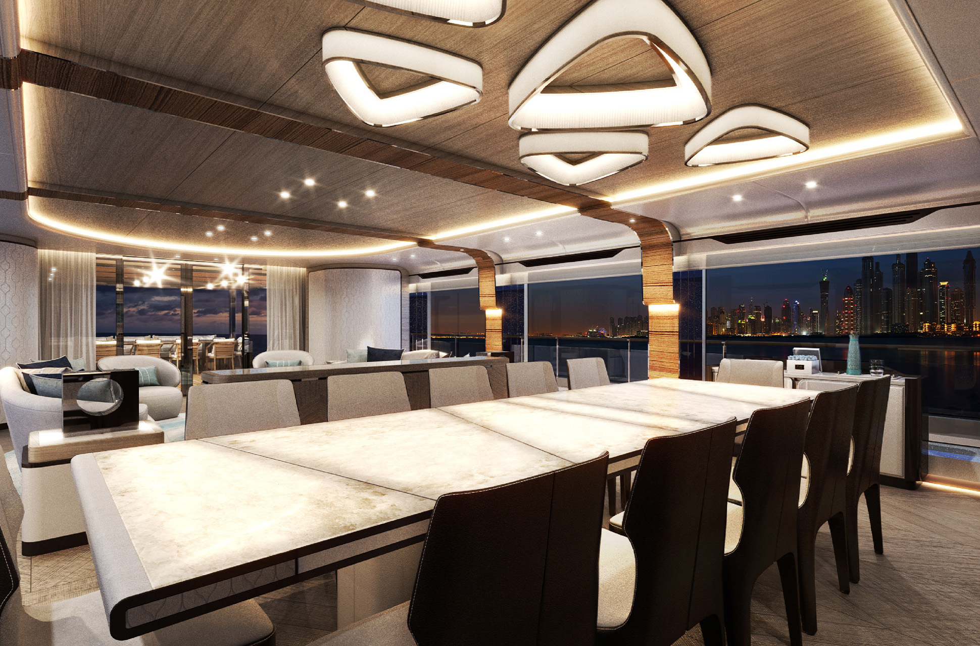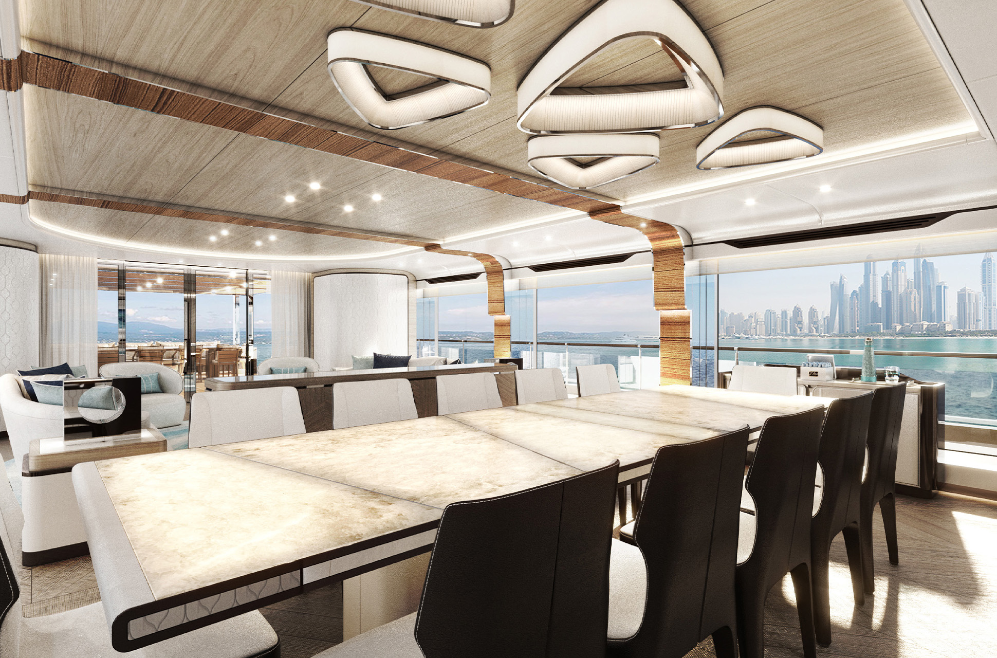 The Majesty 160 is a masterpiece of design and innovation, offering seamless indoor-outdoor living with standout features such as an infinity pool, hybrid beach club, and fold-down balconies. Designed by Italy’s award-winning Cristiano Gatto Design Studio with naval architecture by Van Oossanen of the Netherlands, it redefines its class through contemporary interiors, advanced engineering, and striking exterior spaces.