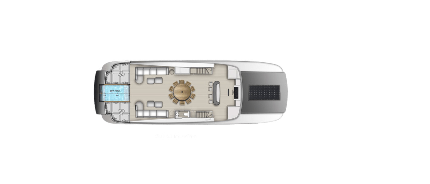 Her expansive sun deck, infinity pool, and versatile beach club create multiple options for relaxation and entertaining, while the fold-down balconies and swim platform provide effortless access to the water. Inside, opulent design and smart layouts cater to every need, blending elegance with cutting-edge technology.