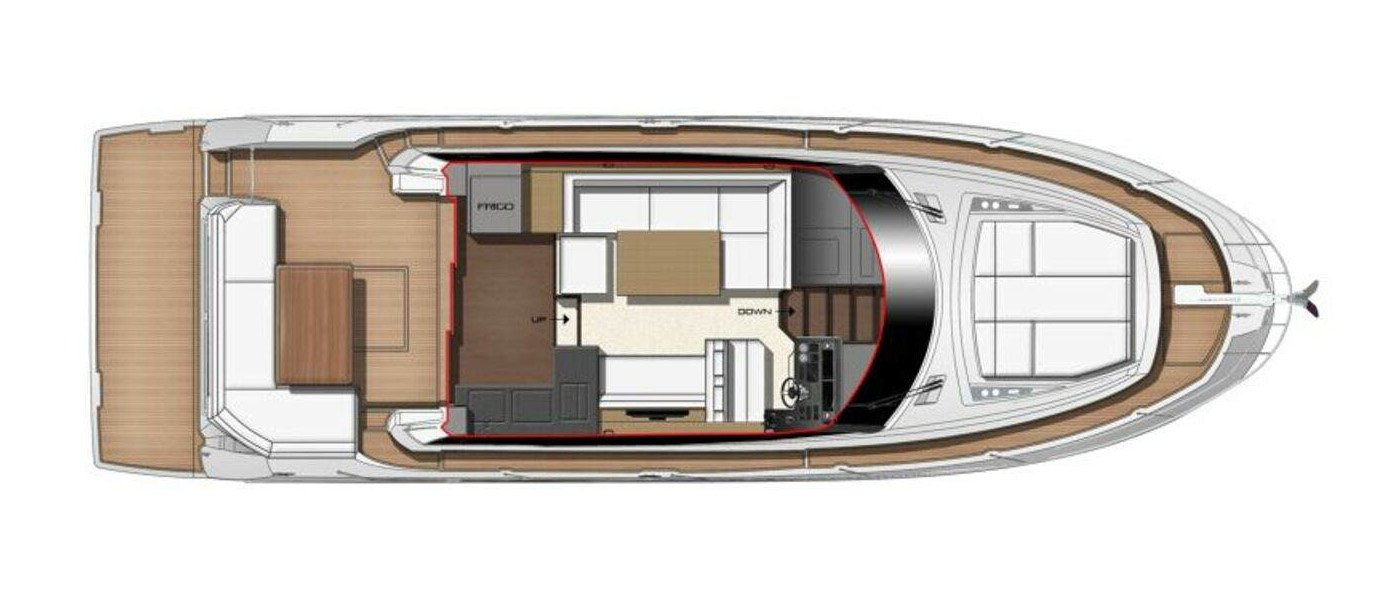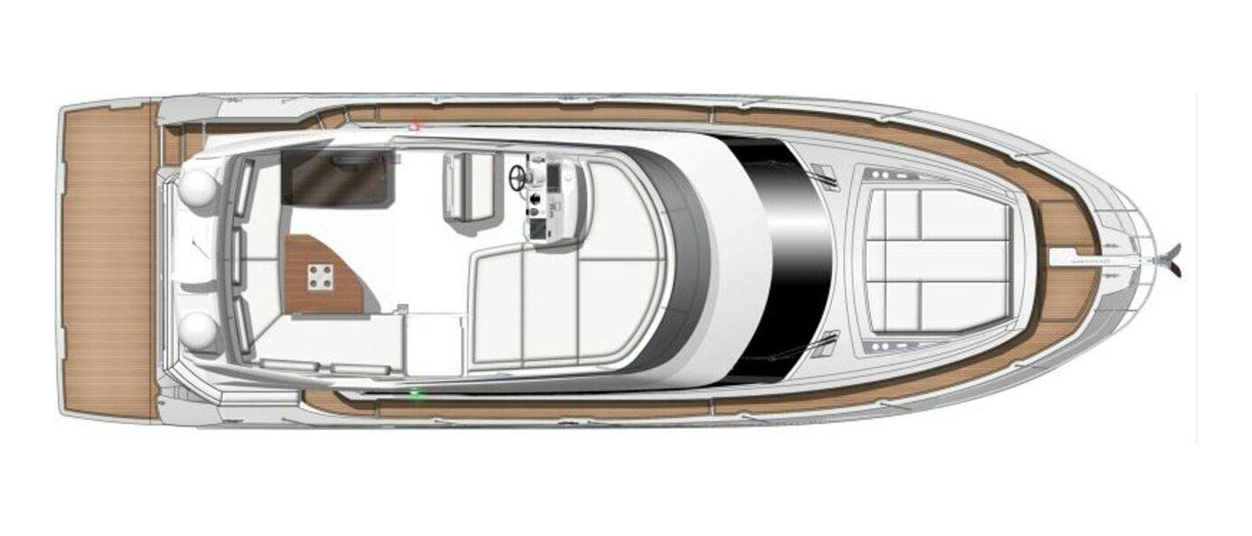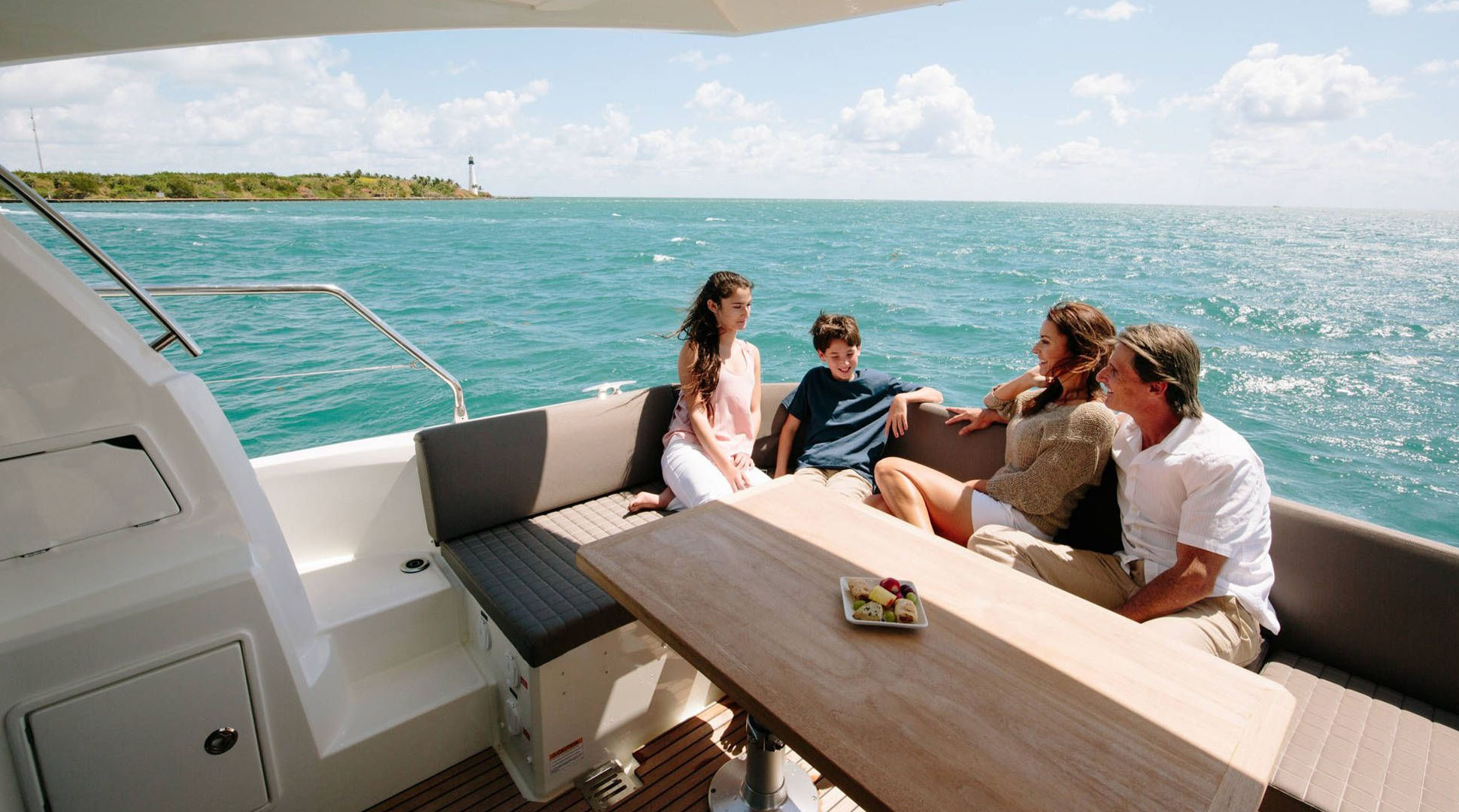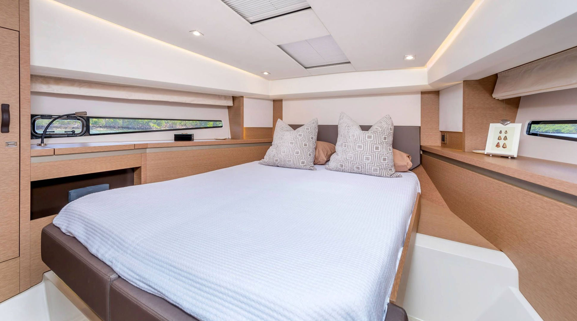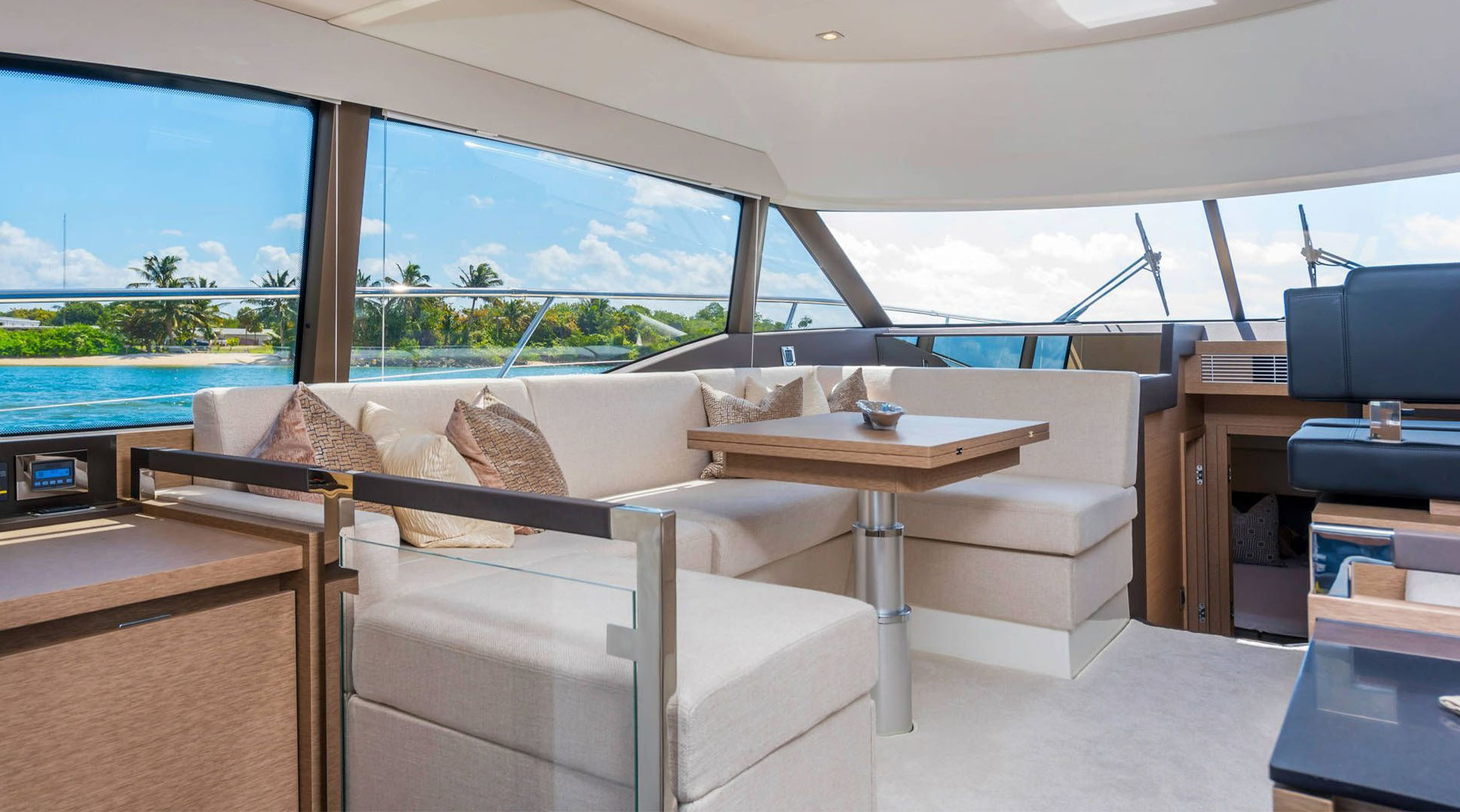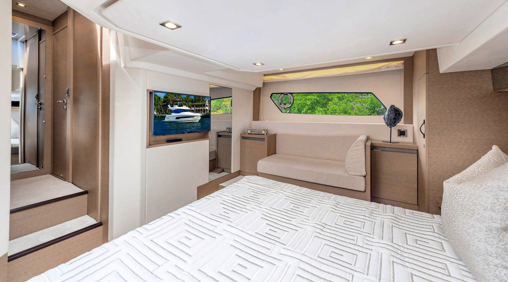 Spacious living feel: Though just under 47 feet, the boat features large windows, a fly-bridge and full outdoor-living spaces, giving it the feel of a much larger yacht.