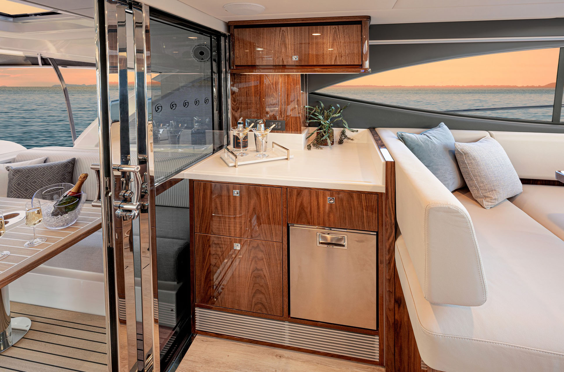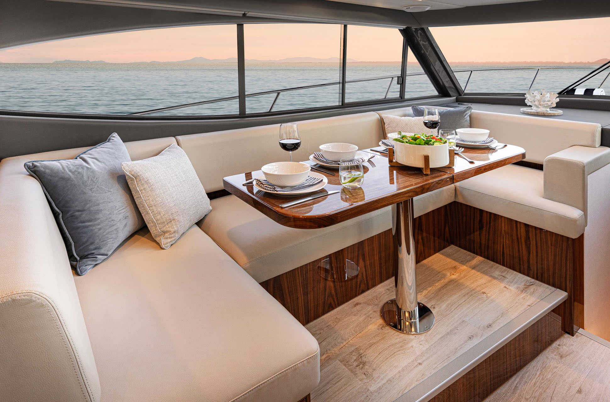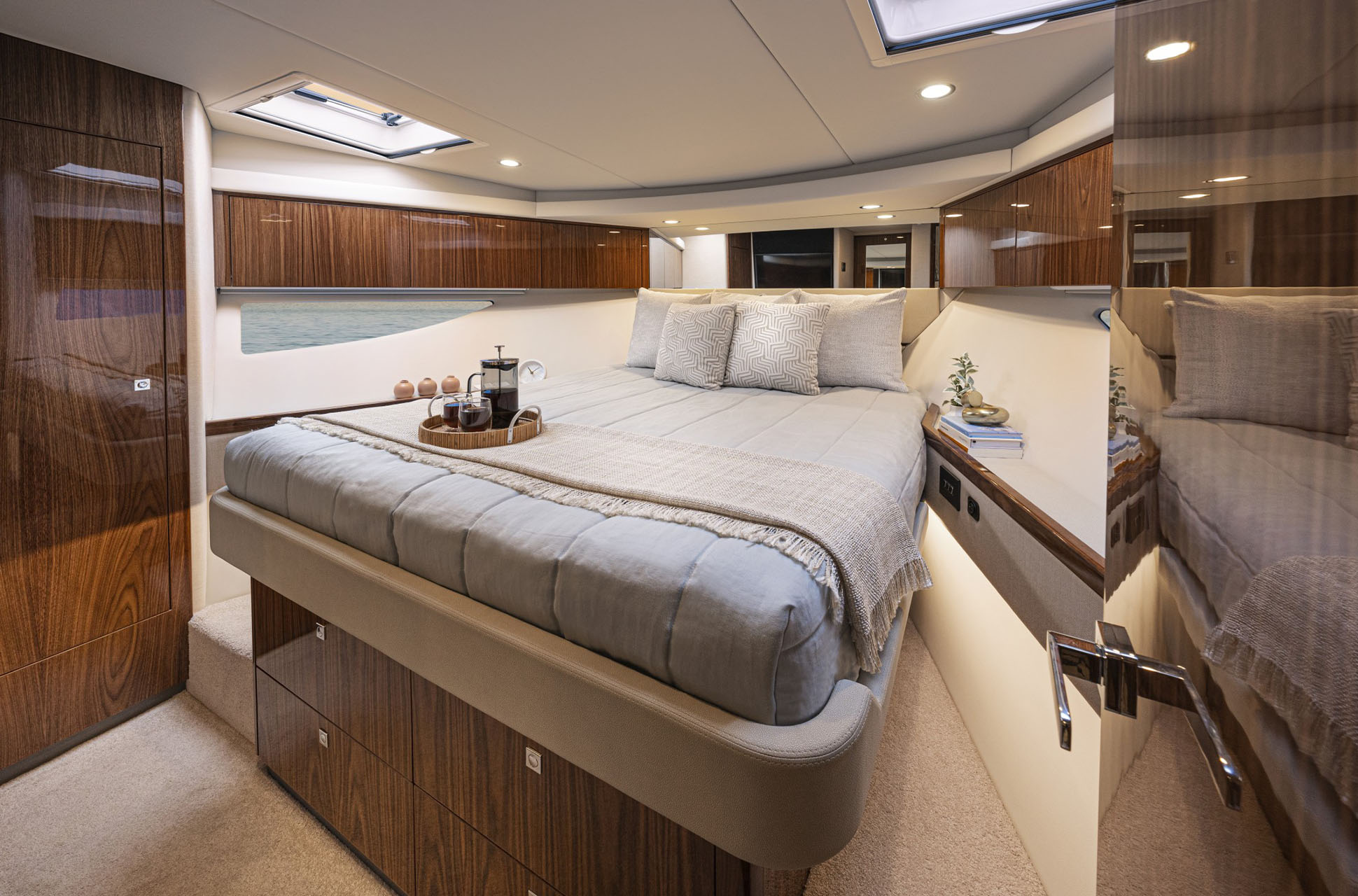 From bow to boarding platform, the 465 SUV showcases Riviera’s hallmark attention to detail, handcrafted finishes, and smart technology that makes boating effortless. The flowing salon opens seamlessly to an alfresco deck, while the expansive cockpit is always ready for water-sports action. Below deck, accommodations include three luxurious staterooms and two bathrooms, offering the liveability of a much larger yacht.