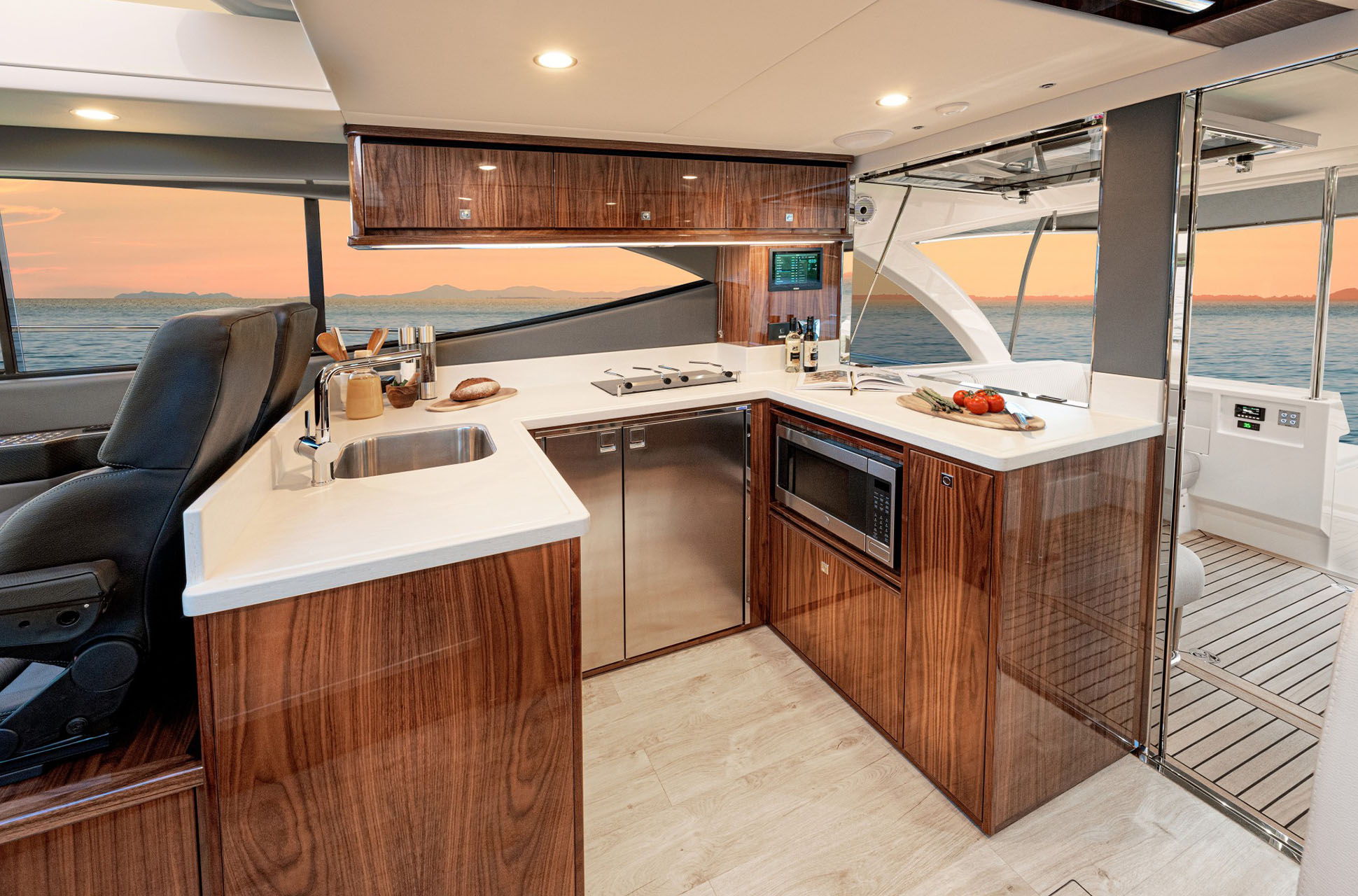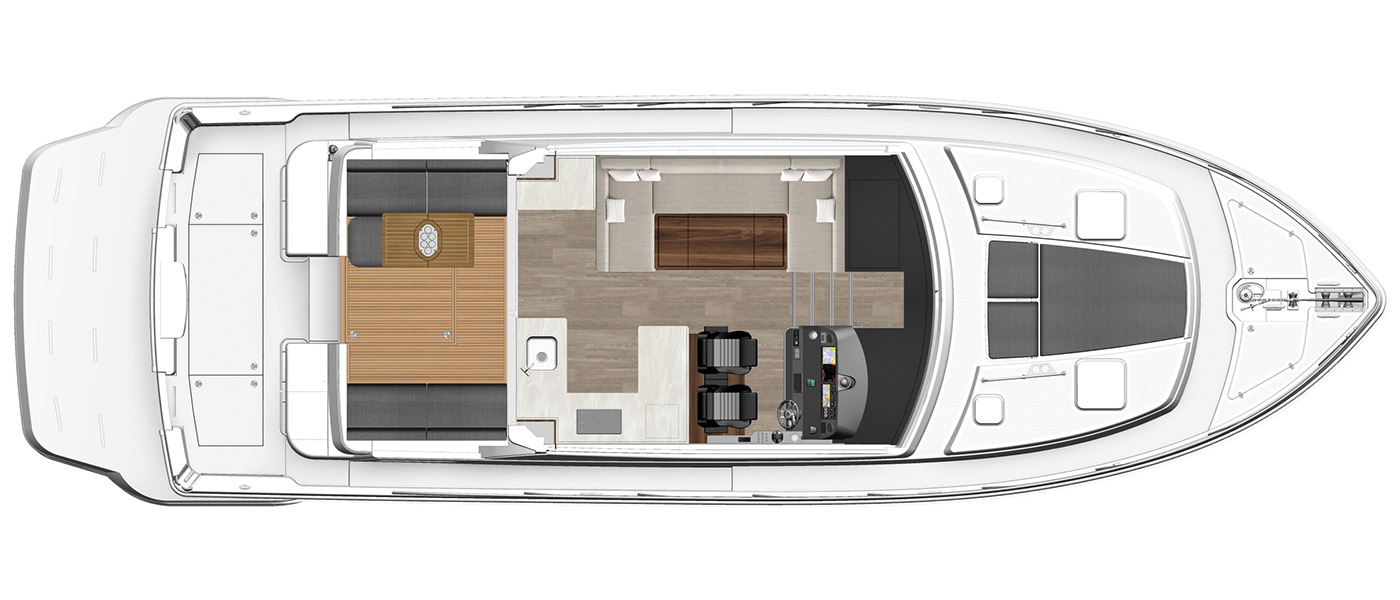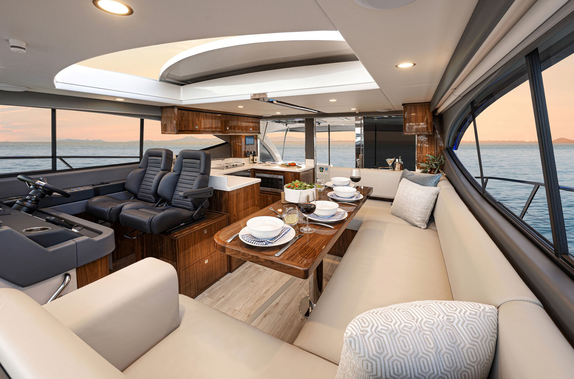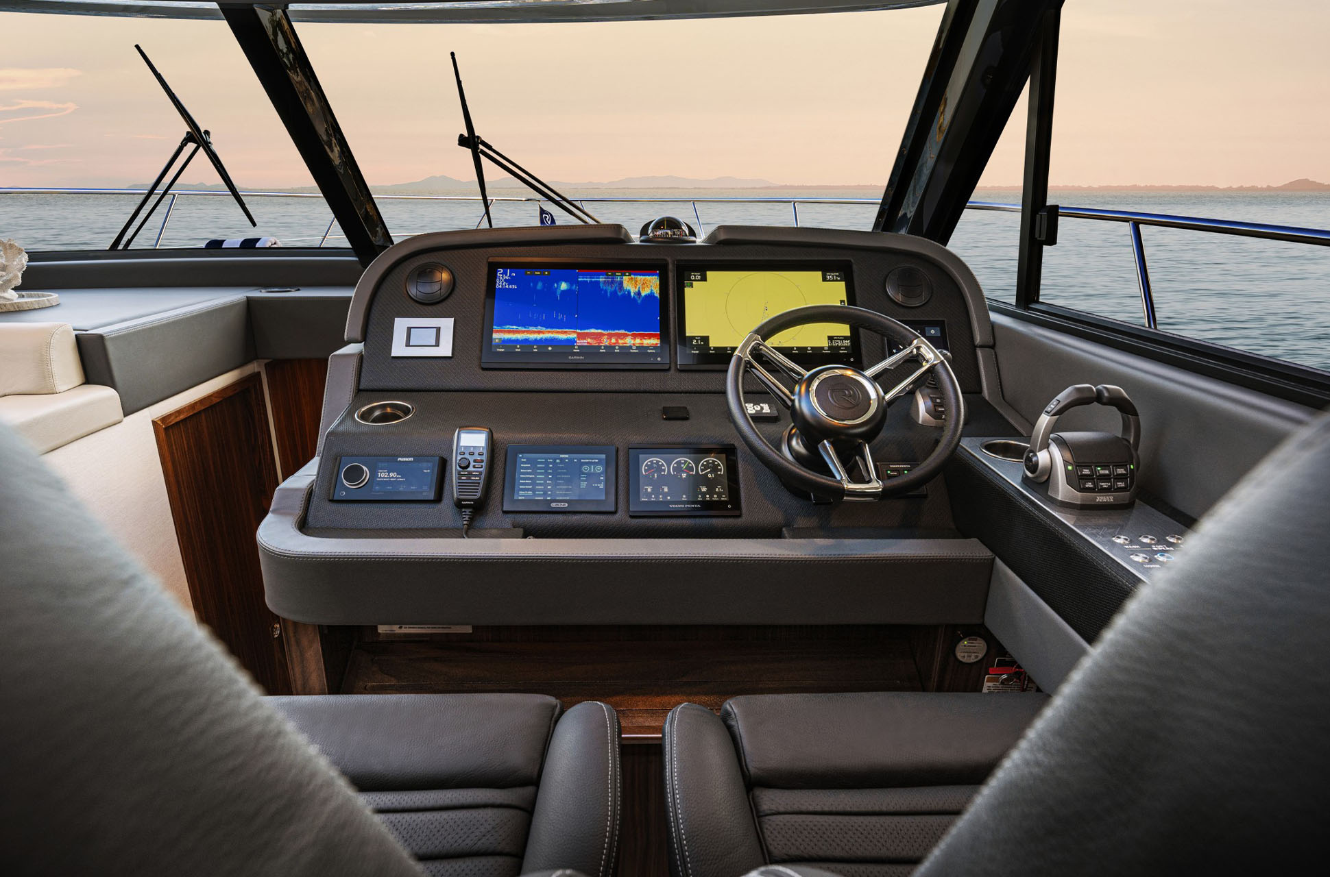 From bow to boarding platform, the 465 SUV showcases Riviera’s hallmark attention to detail, handcrafted finishes, and smart technology that makes boating effortless. The flowing salon opens seamlessly to an alfresco deck, while the expansive cockpit is always ready for water-sports action. Below deck, accommodations include three luxurious staterooms and two bathrooms, offering the liveability of a much larger yacht.
