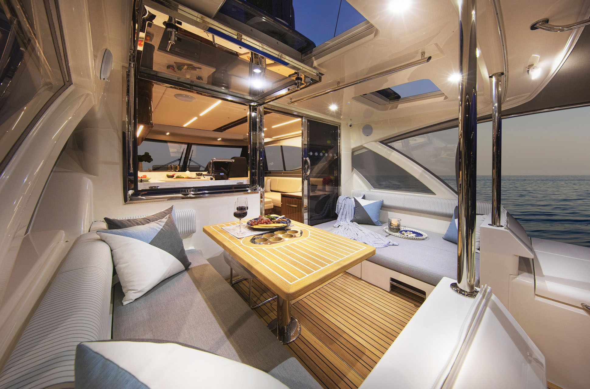 From bow to boarding platform, the Riviera 505 SUV offers an unprecedented scale of comfort, craftsmanship, and versatility — the perfect yacht to escape, explore, relax, and unwind.