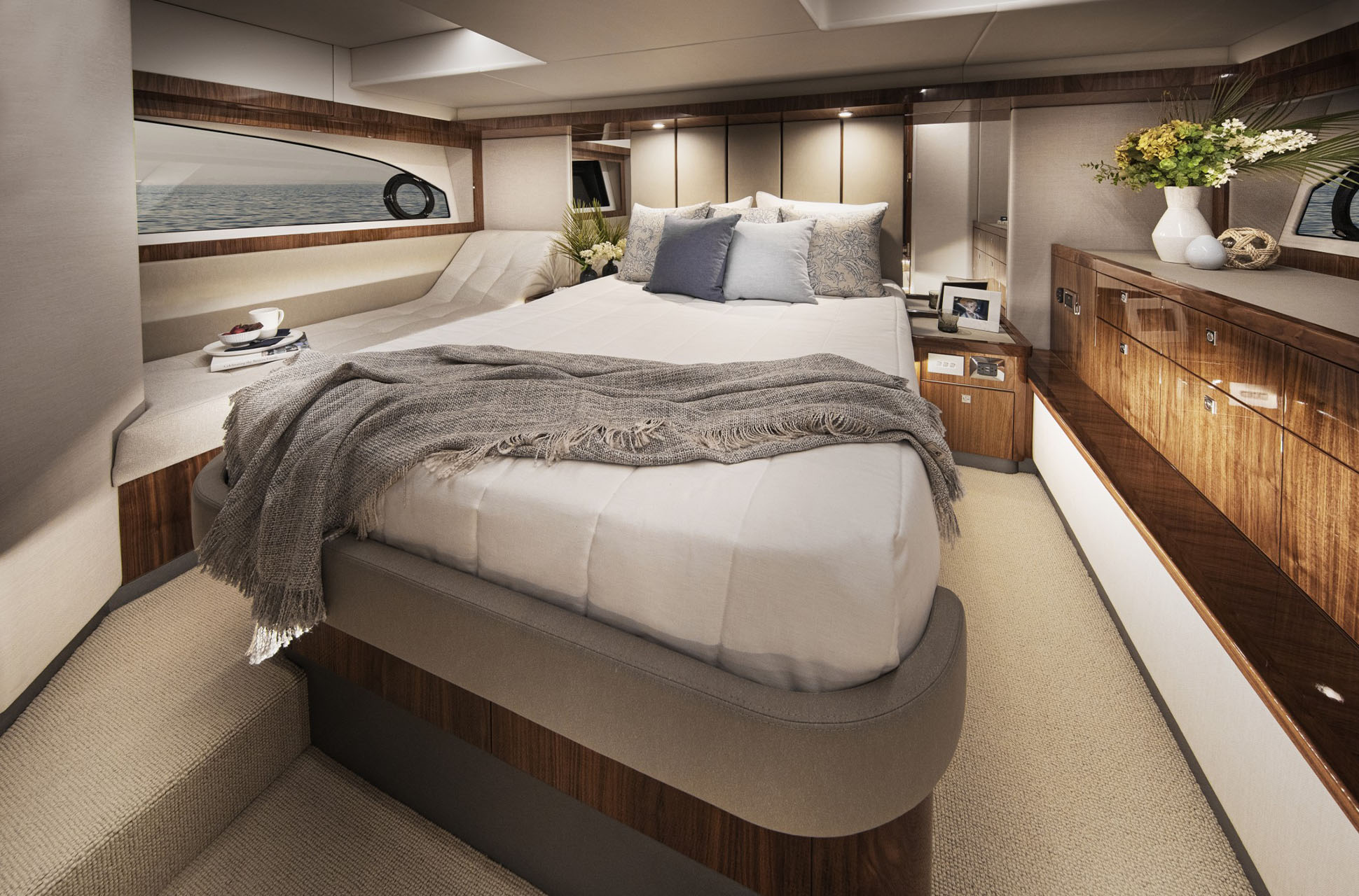 Crafted with Riviera’s world-famous strength, ocean-tested performance, and attention to detail, the 505 SUV delivers both spirited handling and enduring resale value. Onboard, luxury abounds with a full-beam master stateroom featuring a private ensuite and walk-in wardrobe, plus two additional guest staterooms and a shared bathroom. Advanced operational technology, including the Volvo Penta Glass Cockpit and twin Volvo Penta IPS turbo diesels with joystick control, ensures smooth, economical performance and effortless docking.