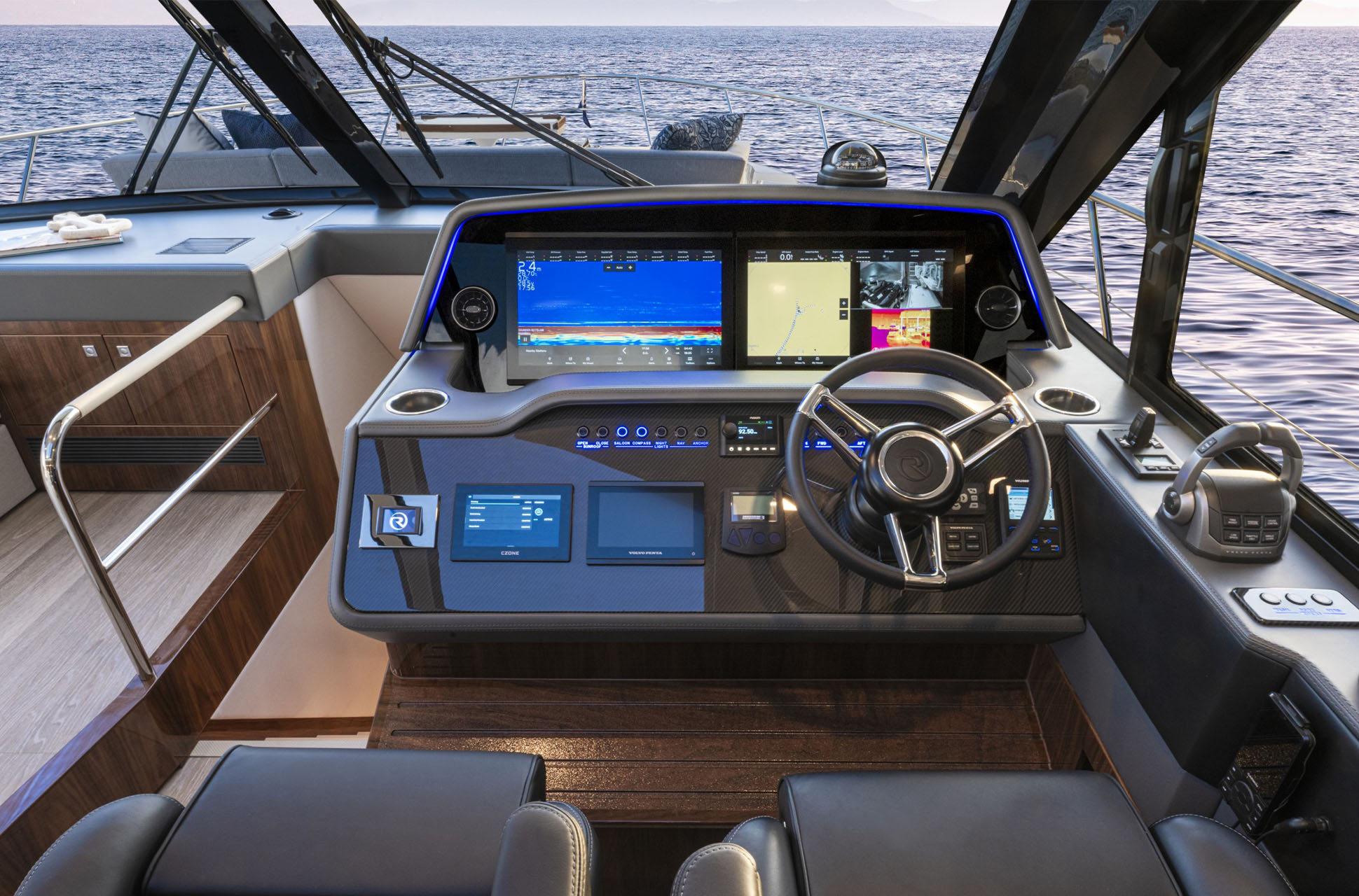 Riviera’s 5600 Sport Yacht raises the bar for luxury motor yachts under 60 feet, with smart engineering, confident offshore capability, and efficient performance. The result is a boat that feels bigger than you expect, with the comfort and build quality to match.