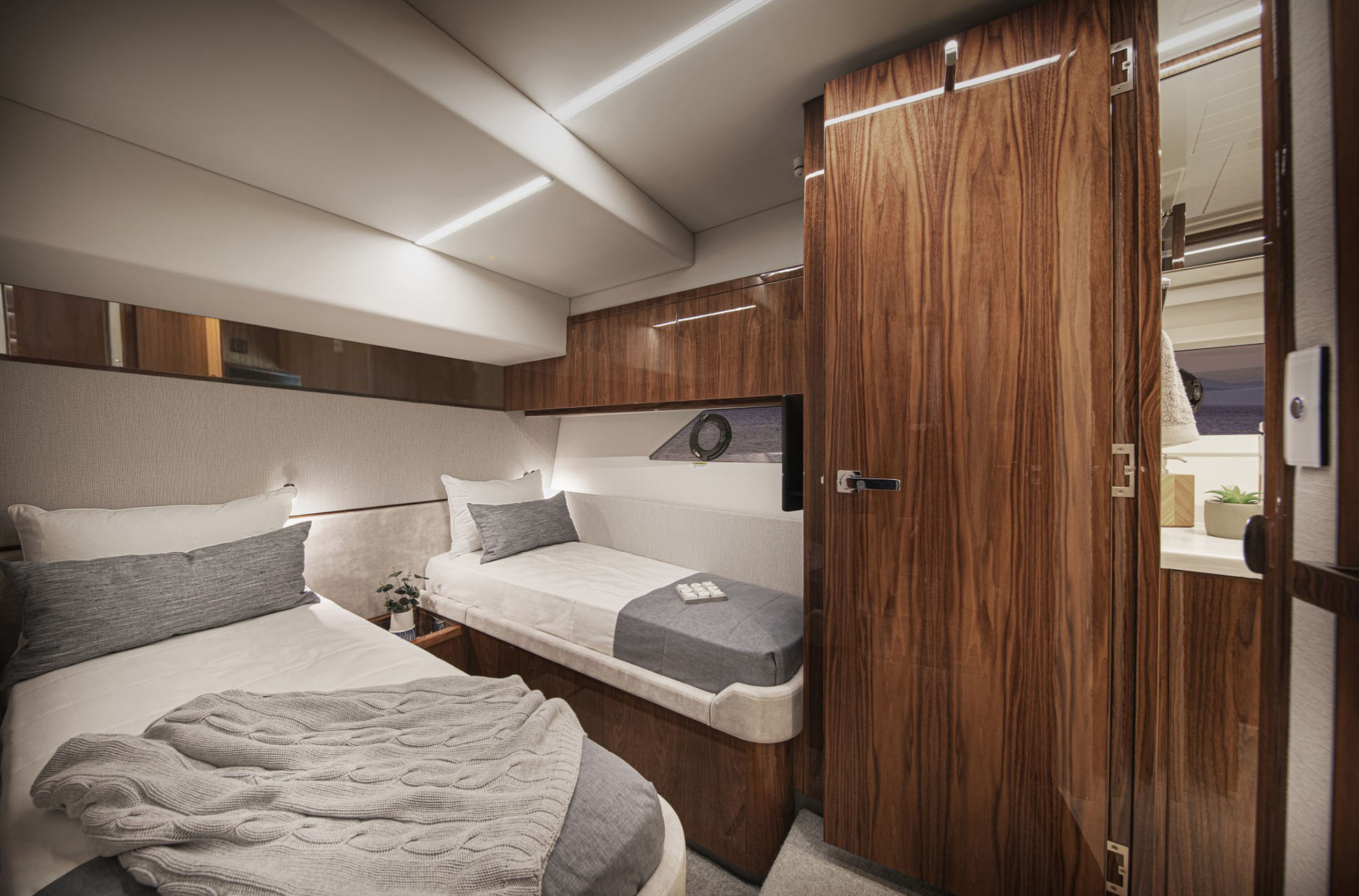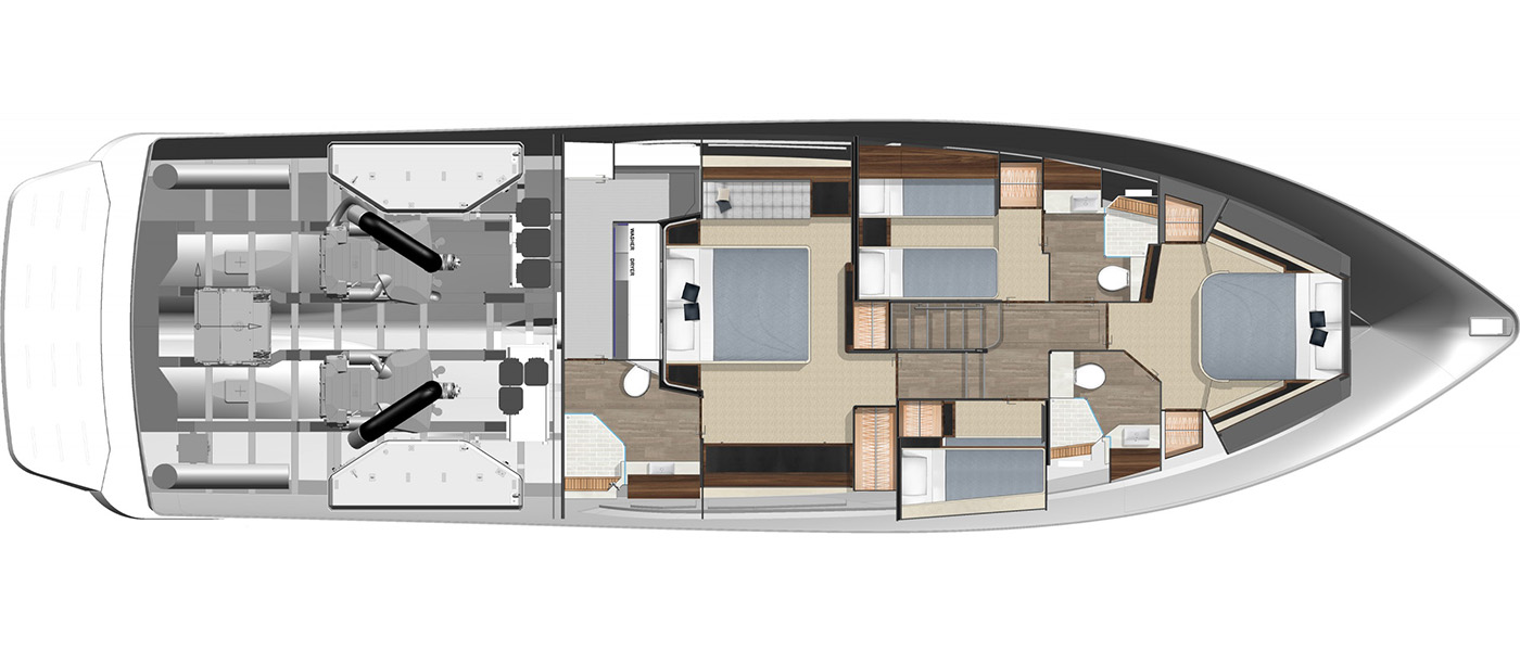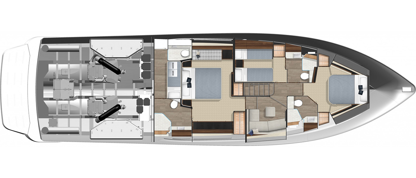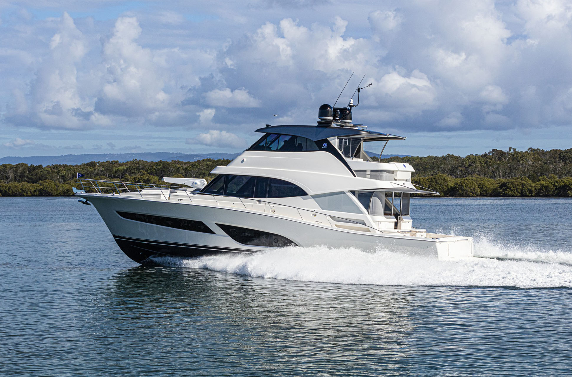 The Riviera 64 Sports Motor Yacht combines signature sports styling and performance with Riviera’s renowned luxury and offshore capability. Its smooth and quiet ride redefines the class, delivering blue-water performance that exceeds expectations. Designed by the award-winning Riviera team in collaboration with 4D Designs, the 64 SMY is crafted to exacting standards at Riviera’s Gold Coast facility and inspired by the requests of experienced owners seeking true long-range luxury.