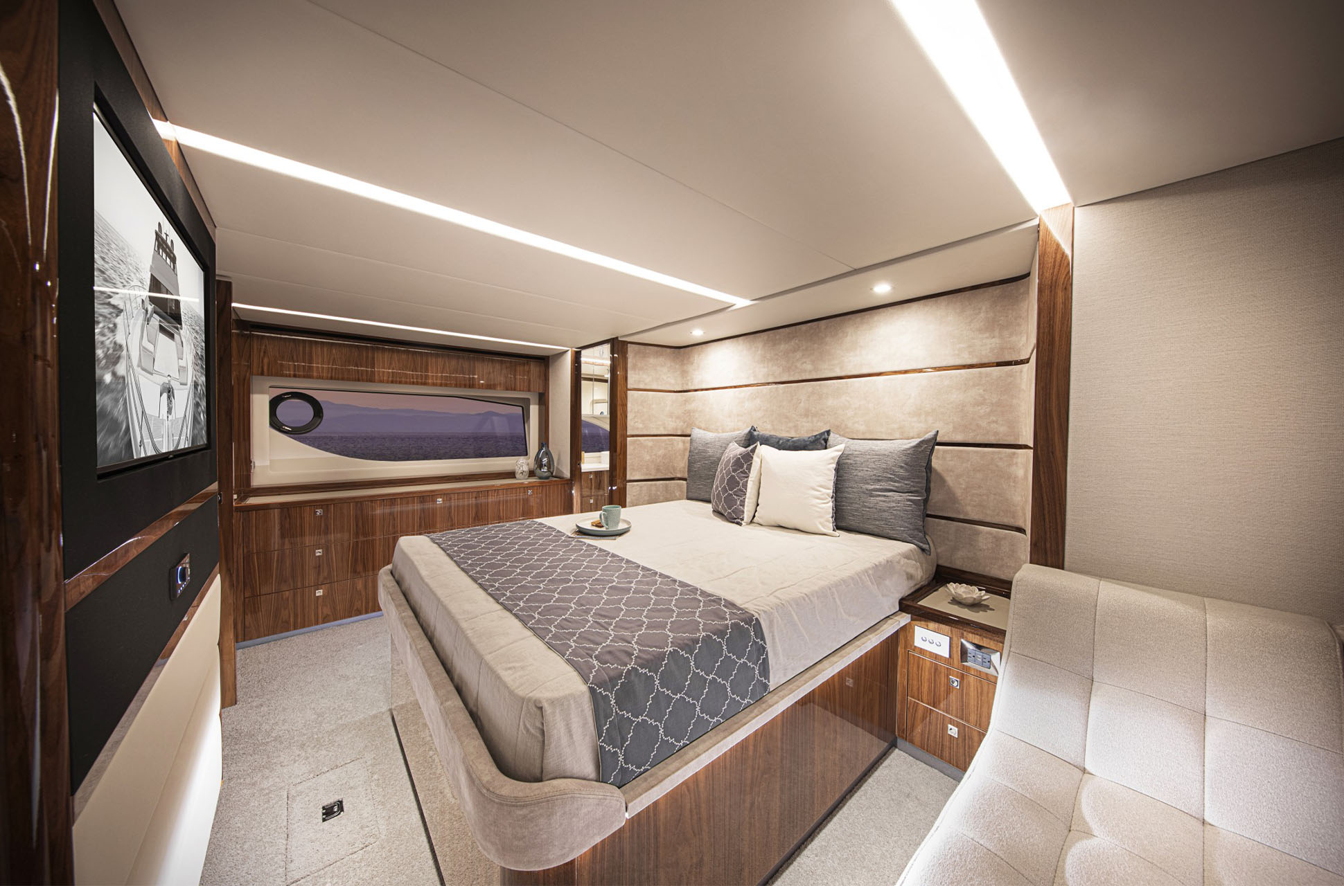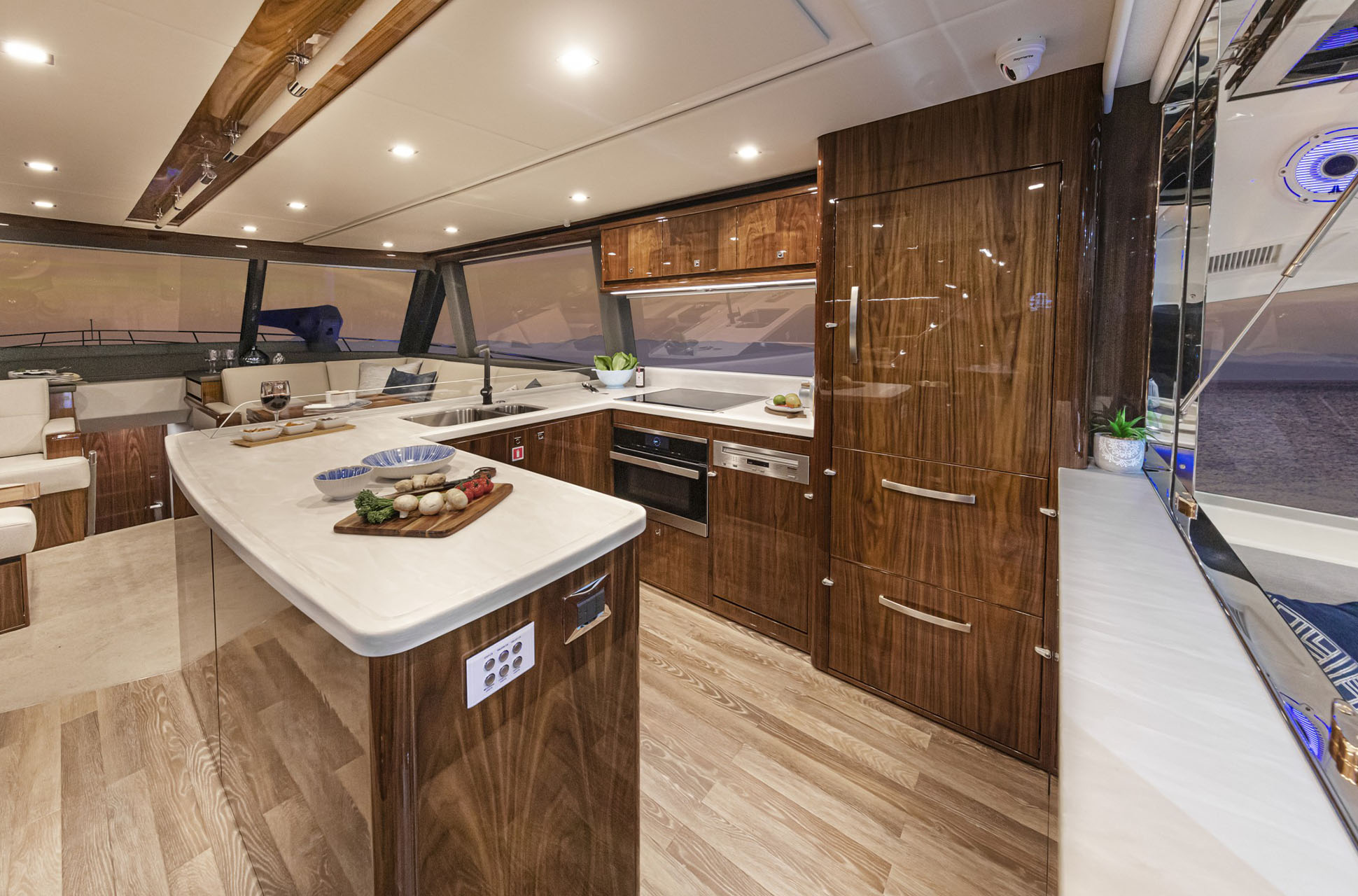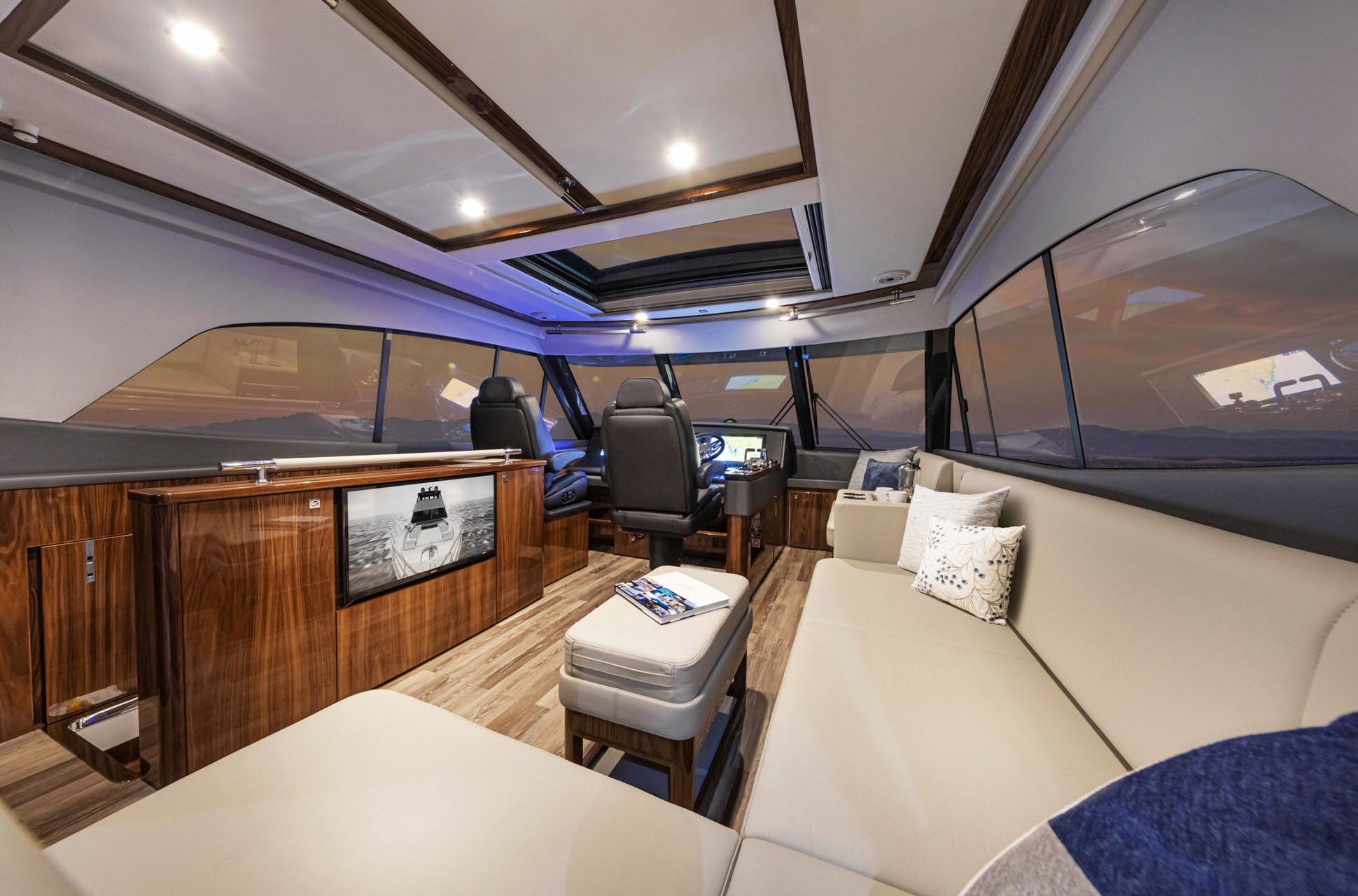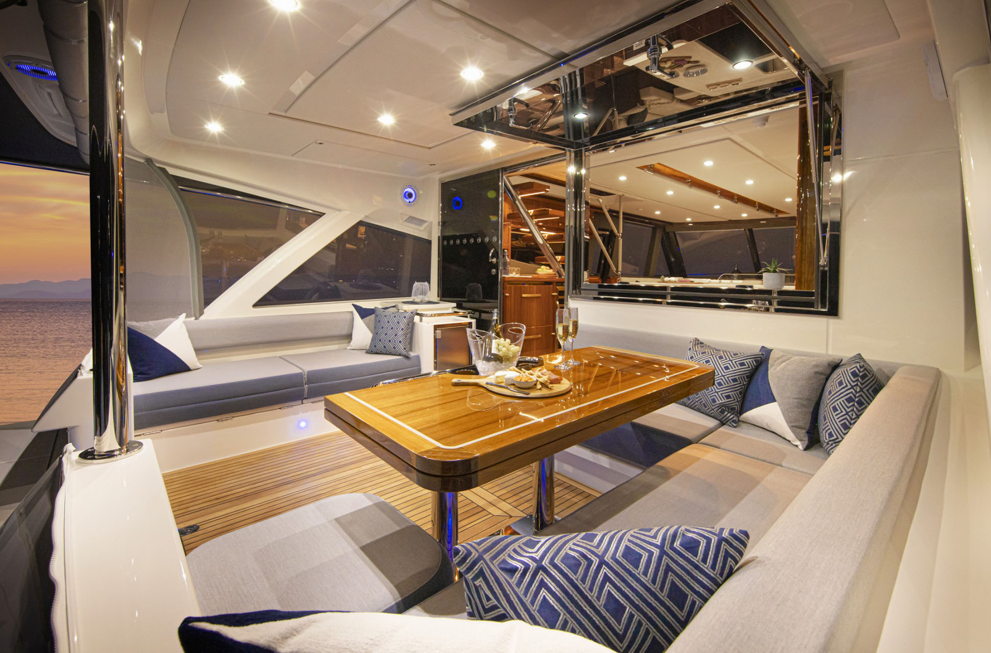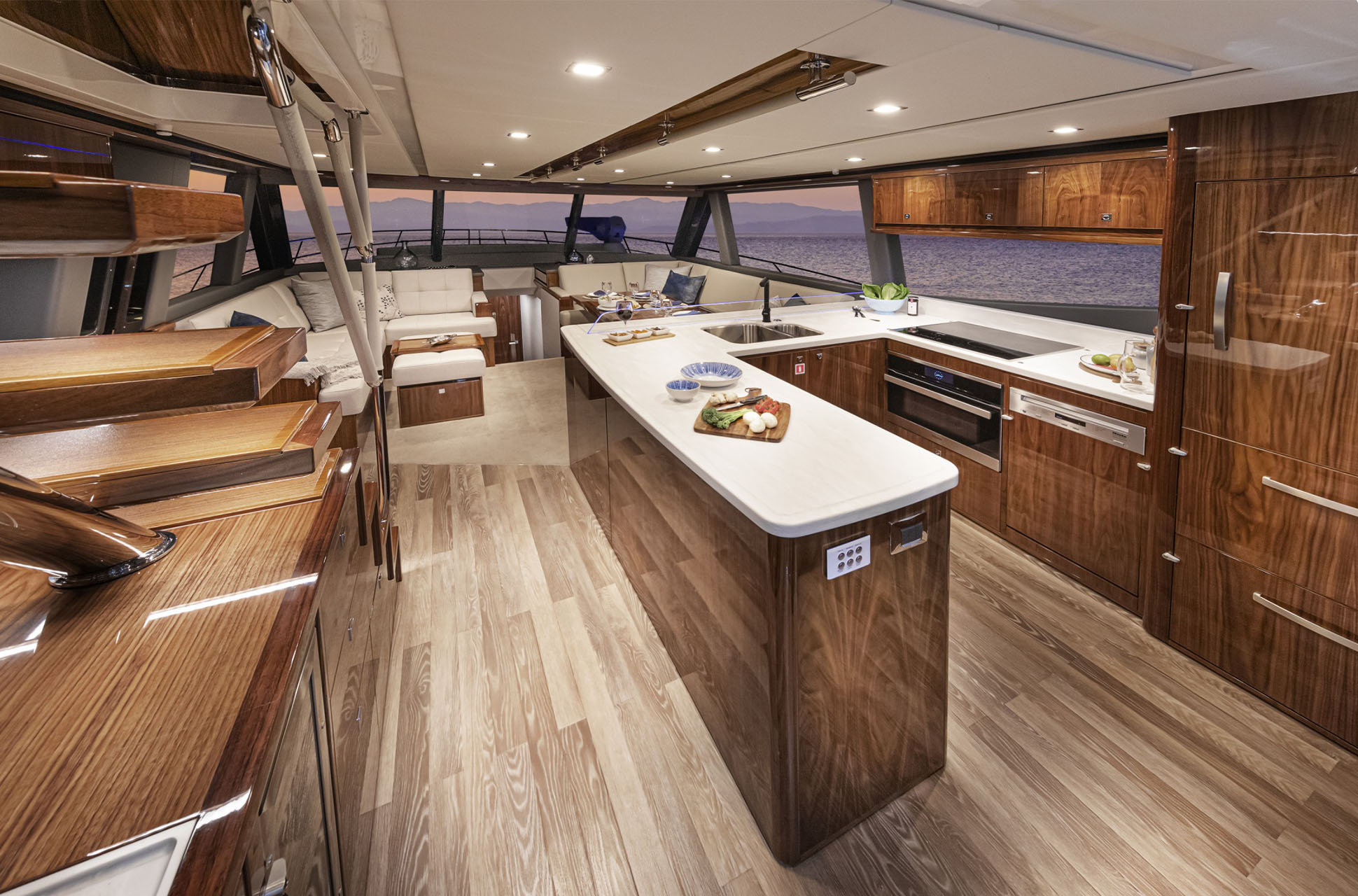 Onboard, the 64 Sports Motor Yacht offers the versatility to enjoy both adventure and relaxation. The sporting cockpit is ideal for fishing, diving, and watersports, while elegant living spaces provide the perfect backdrop for entertaining or unwinding. Every detail reflects Riviera’s hallmark craftsmanship, from refined appointments to advanced engineering that ensures comfort, efficiency, and ease of operation.