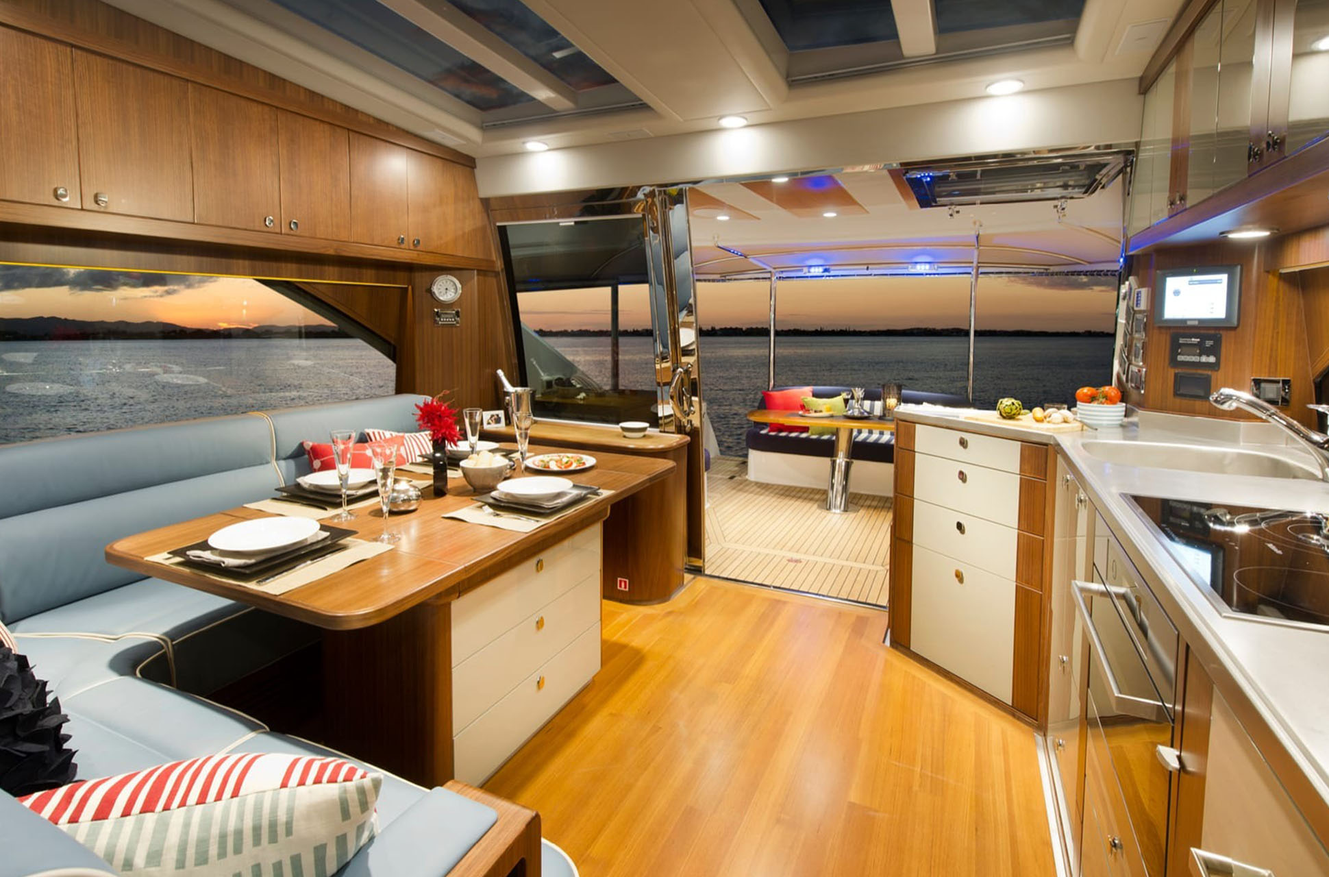 The Belize 54 Sedan was created by 4D Designs in partnership with Riviera and the Belize design team, blending European style with Australian practicality. The result is a motor yacht that delivers both elegance and functionality, with thoughtfully planned spaces throughout every area on board.