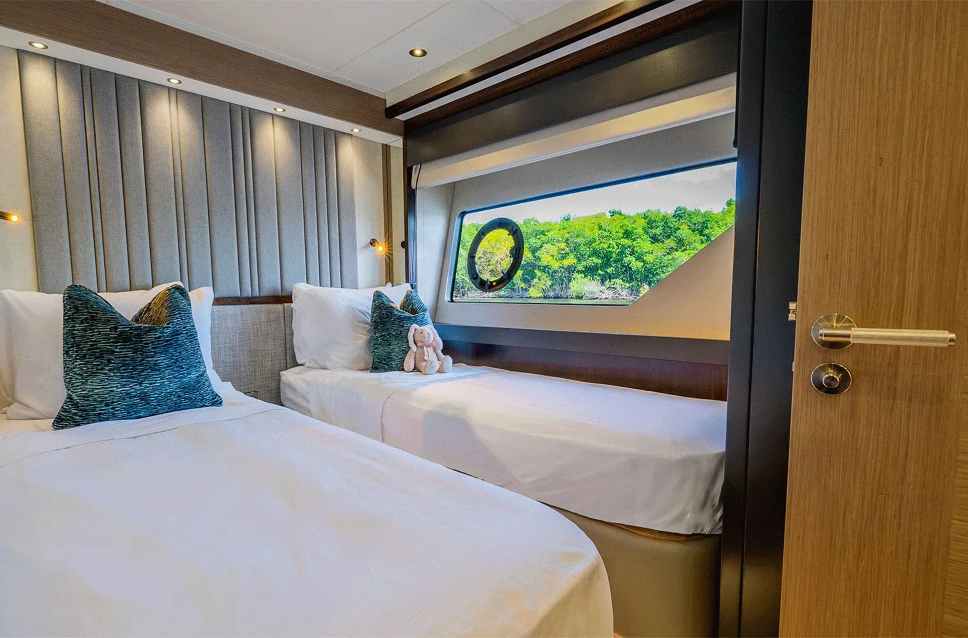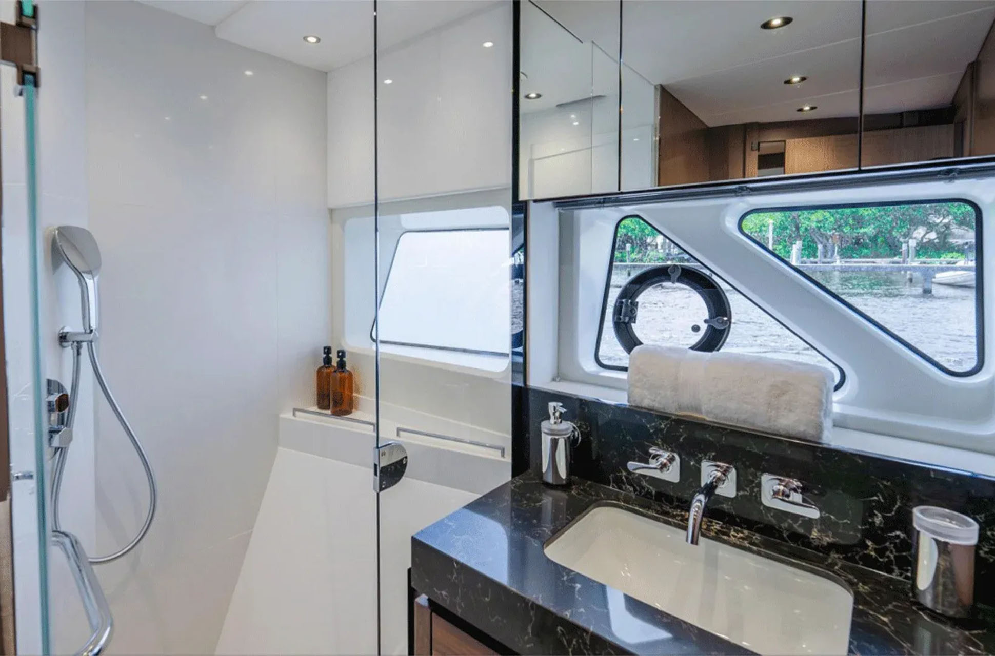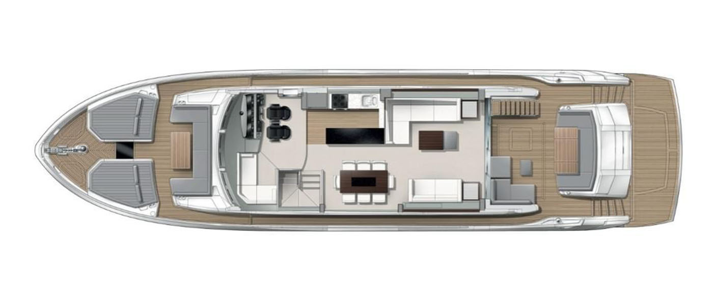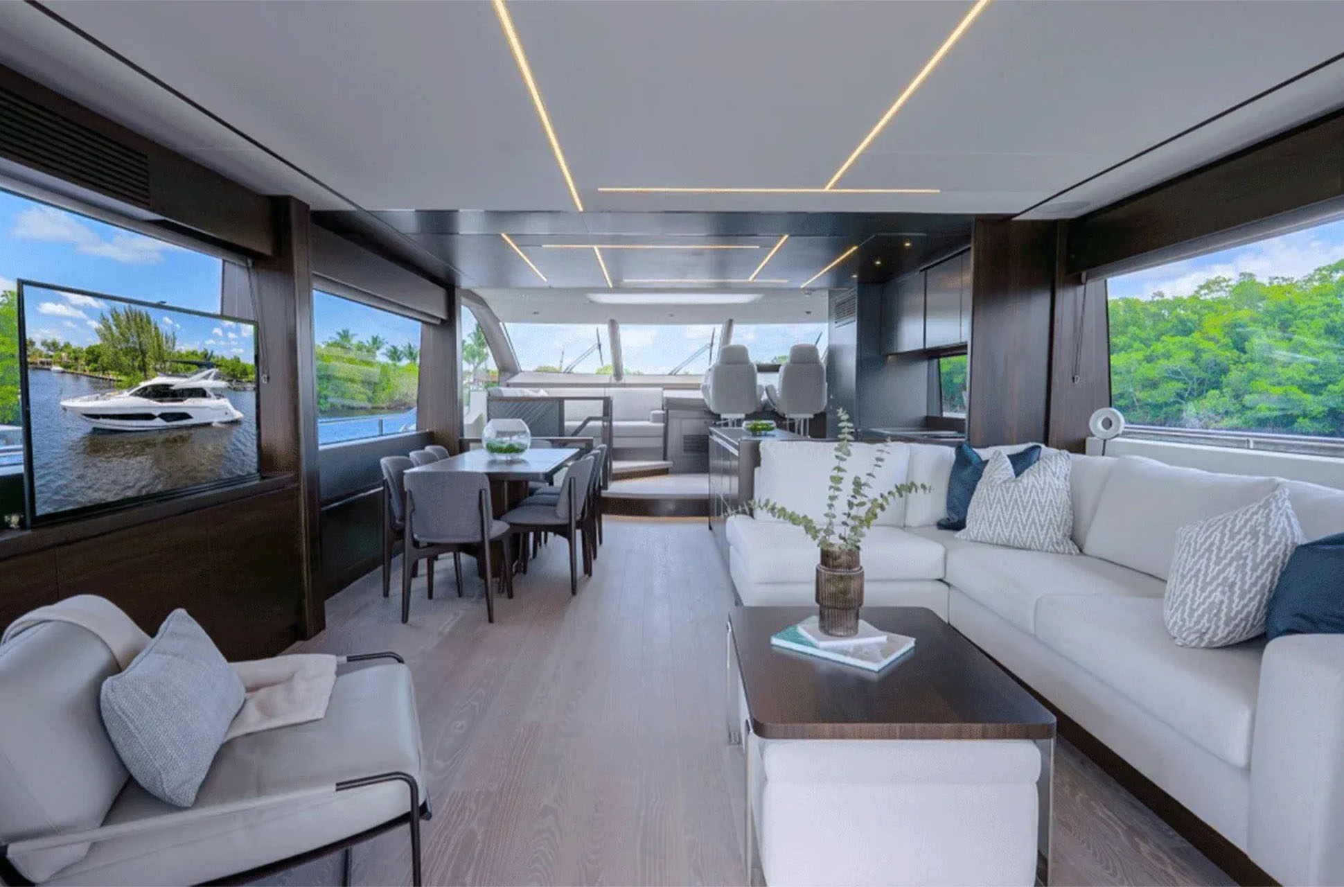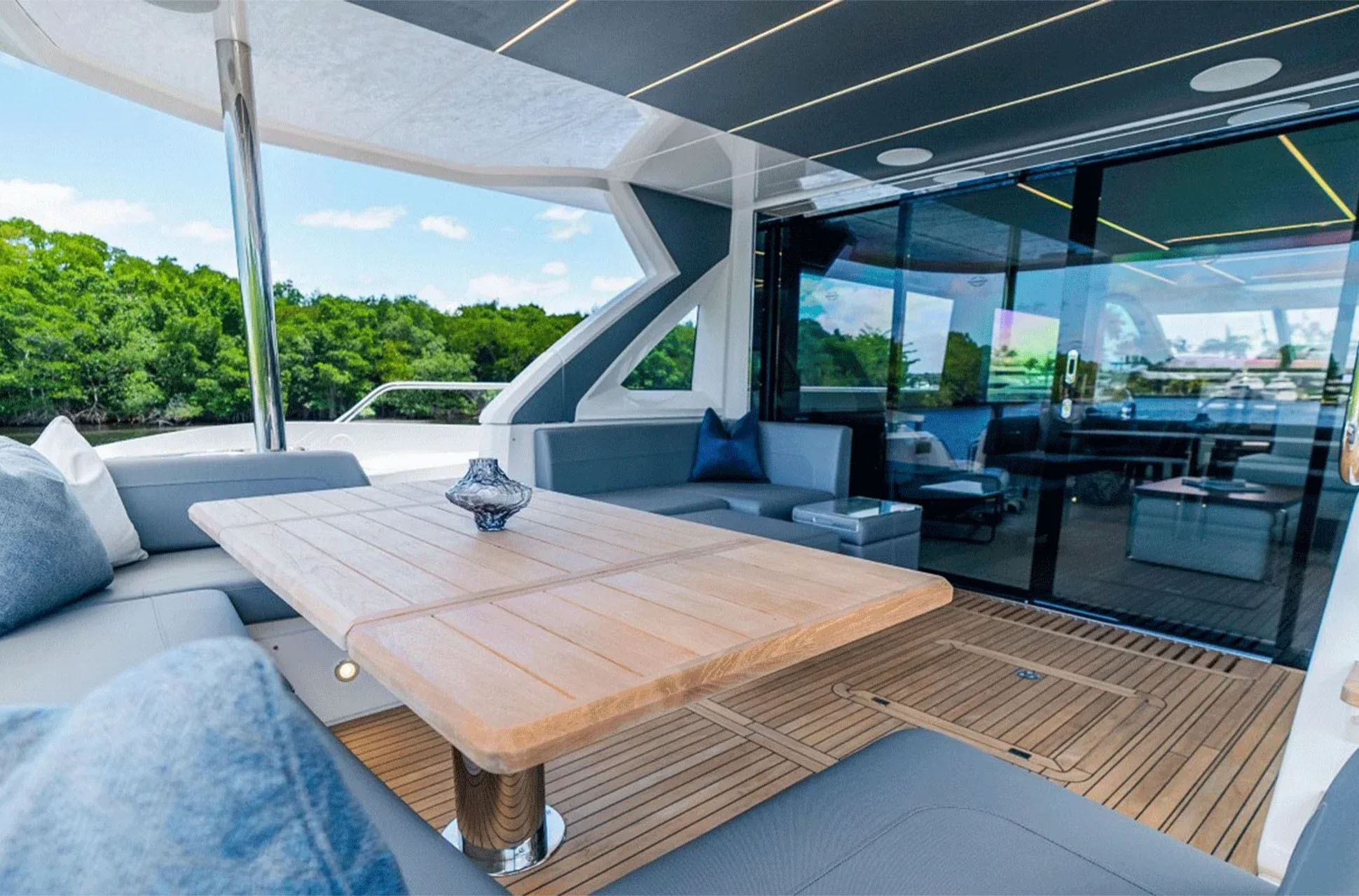 Striking on the horizon, the 76 Yacht features expansive glass that floods the interior with natural light, while the main deck offers nearly 360-degree views, perfect for entertaining. Designed for al fresco living, the flybridge provides unmatched space and flexibility, with options for a spa tub, jet ski with crane, or additional sunbeds—allowing owners to tailor the layout to their lifestyle.