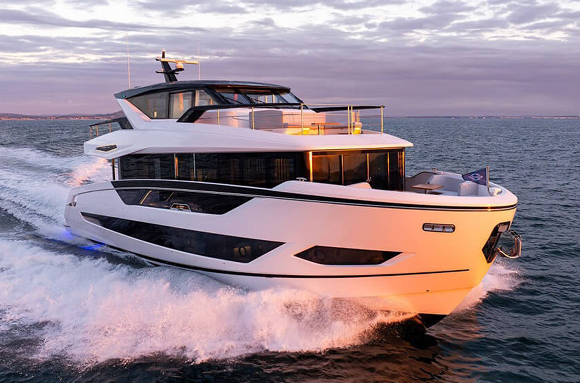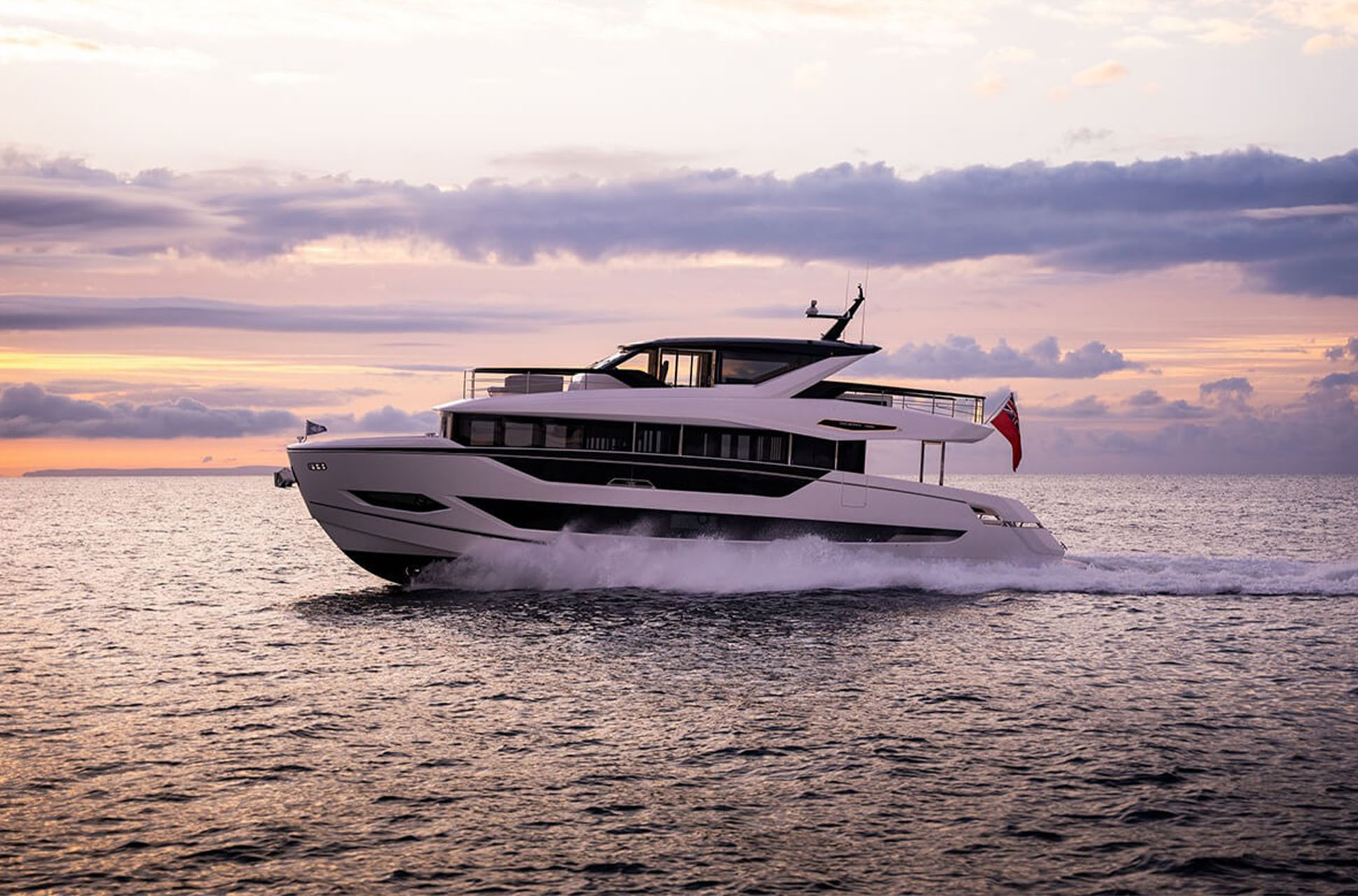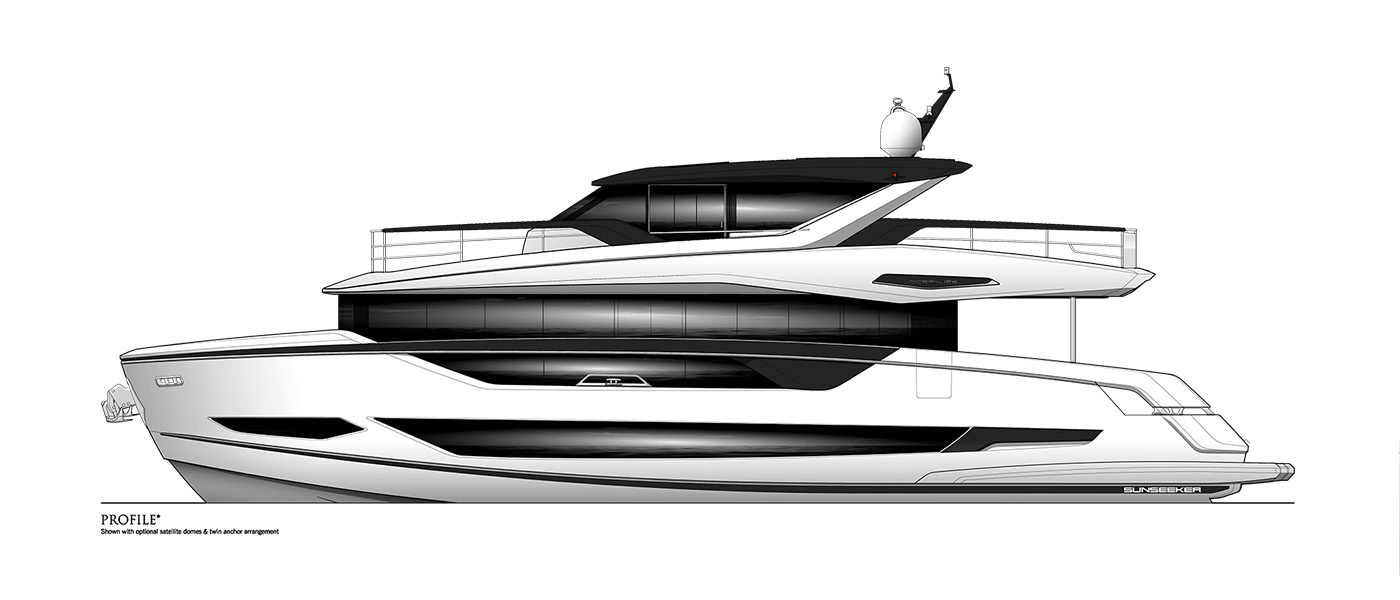 The 82 Ocean Enclosed accommodates up to eight guests in total luxury, combining Sunseeker’s hallmark performance with speeds up to 25 knots.