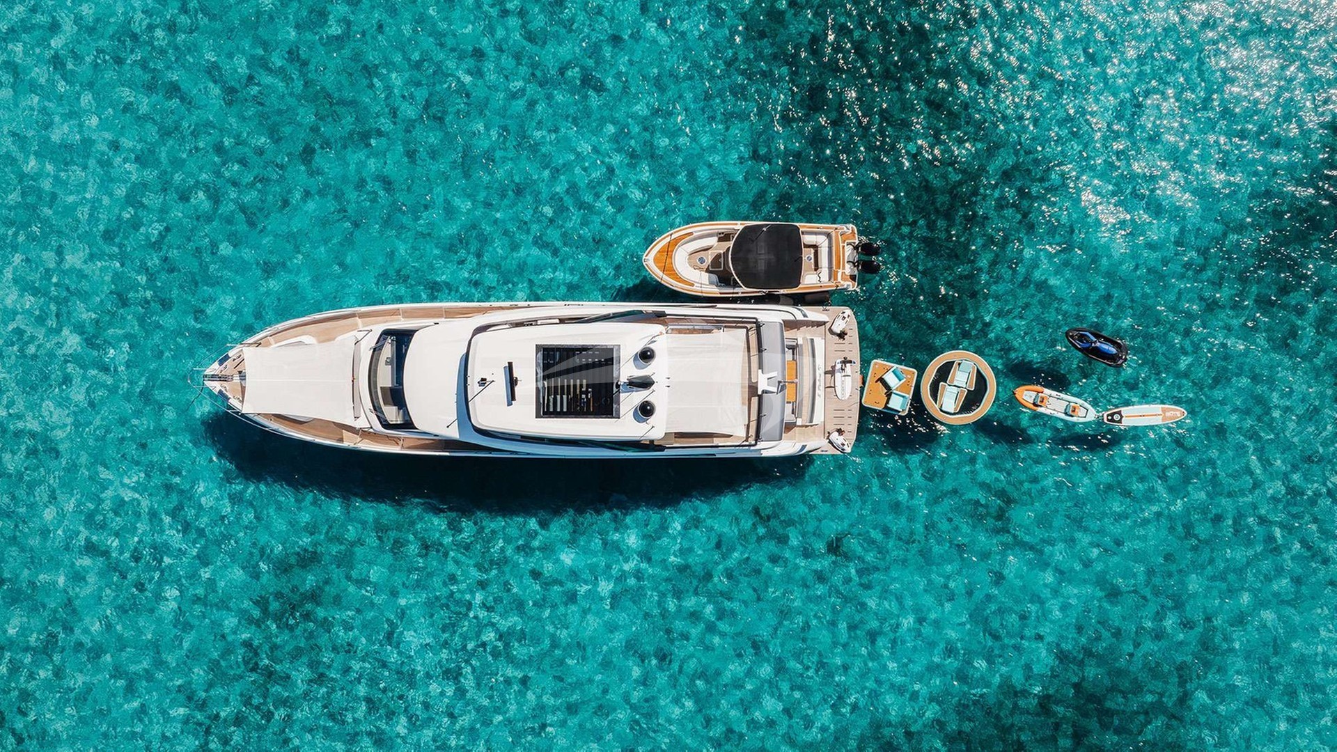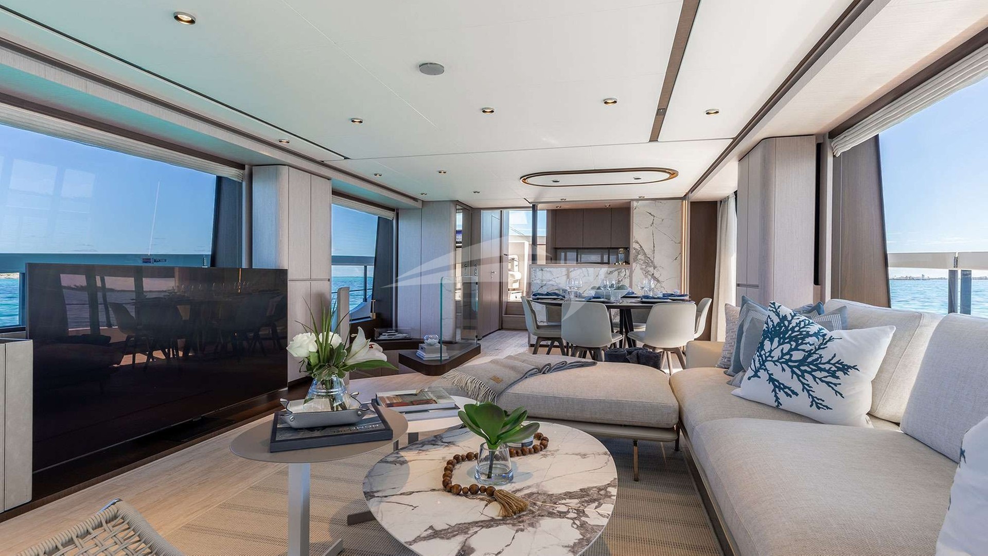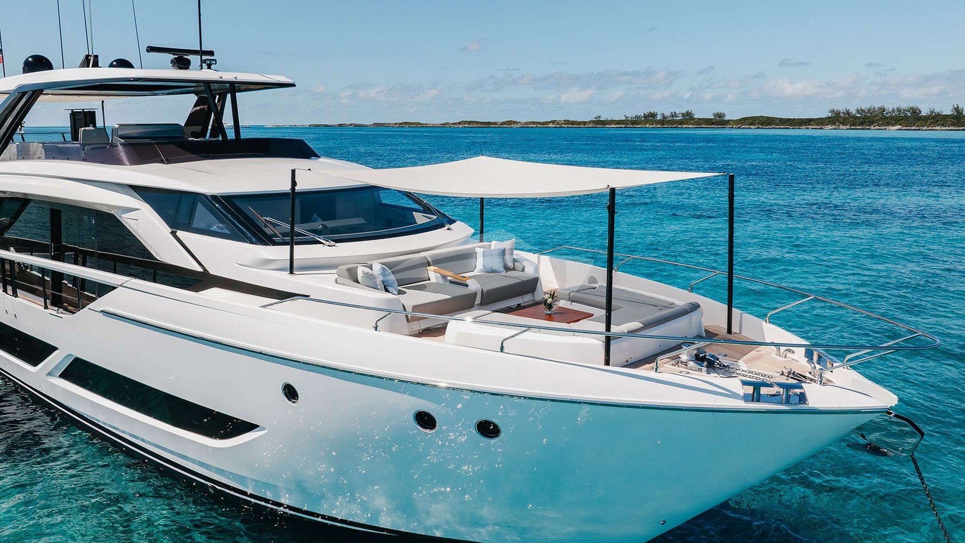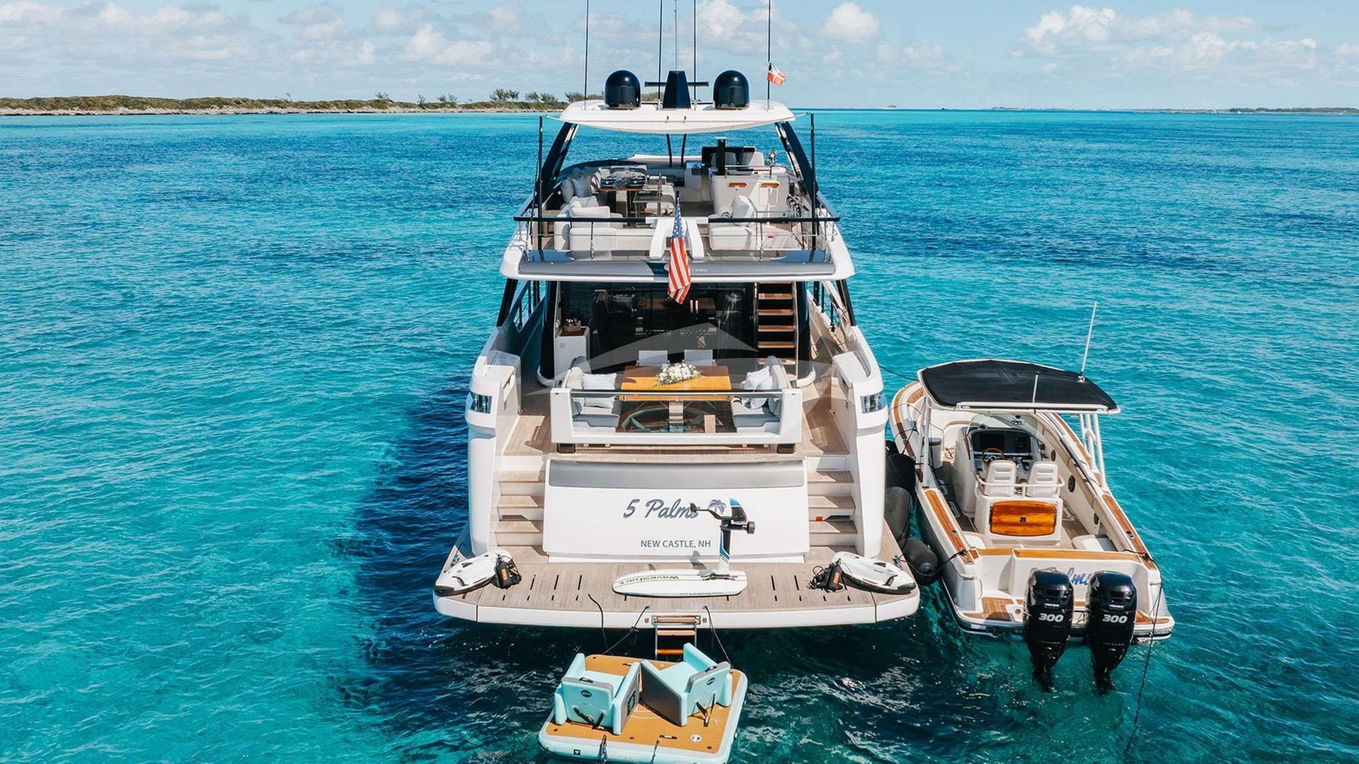 5 Palms Yacht Charter is a 88' superyacht built by Ferretti in 2024. She sleeps 8 and holds 4 crew and is located in Caribbean and Caribbean. She can be booked for a private luxury charter at a rate of $66,000 per week. Please check with your Denison Charter Specialist for more info.