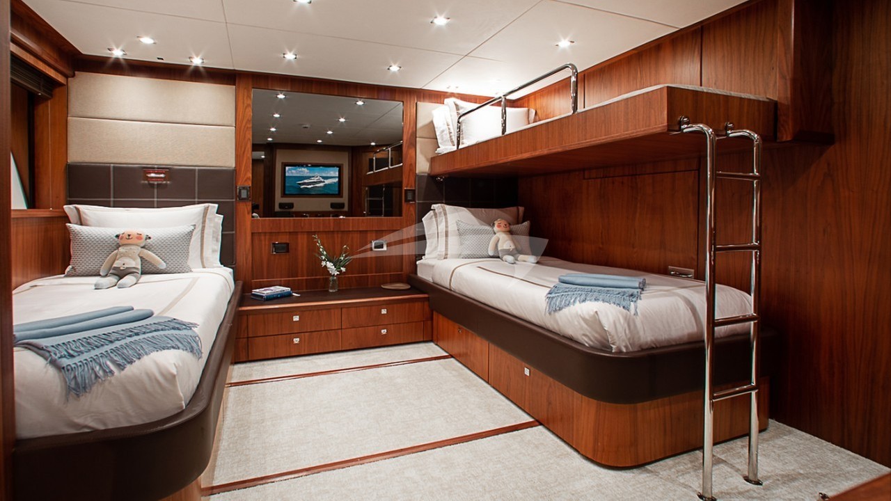 The remaining guest cabins are split between four en suite cabins on the lower deck, with two VIP suites and two twin cabins (each twin room can be converted to a double as needed and are equipped with an additional Pullman berth)