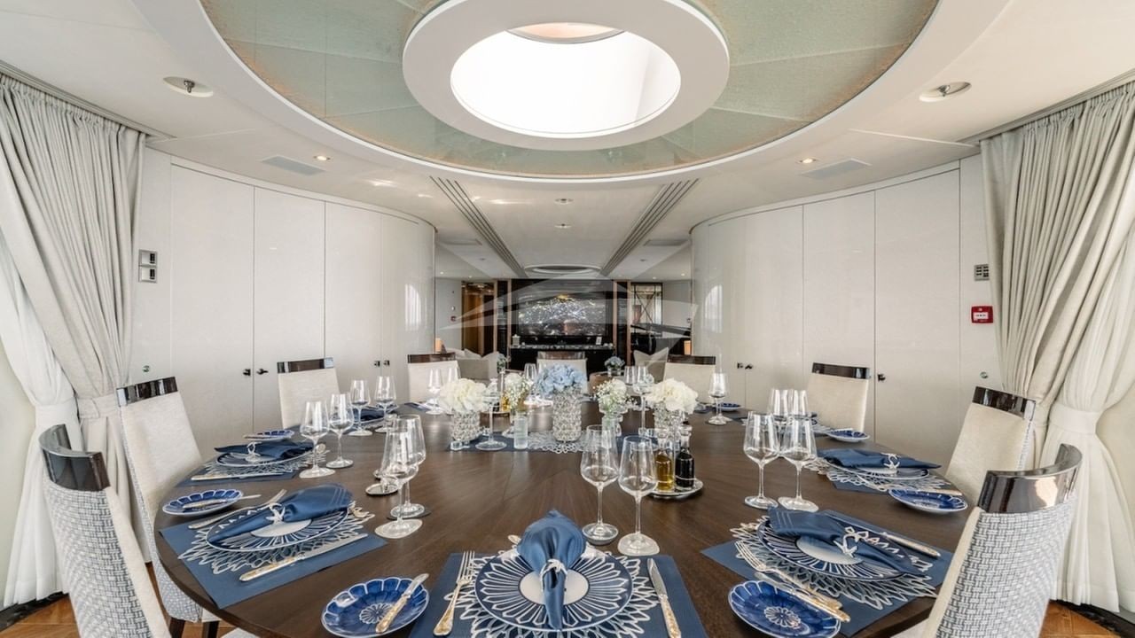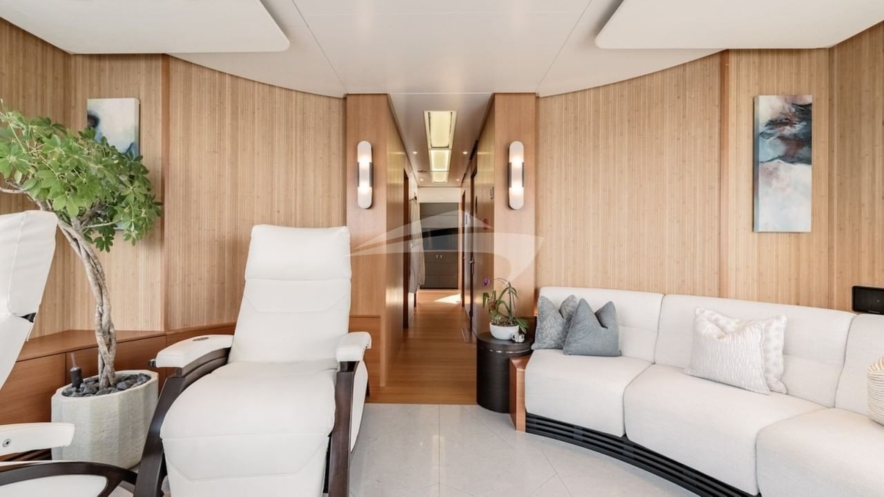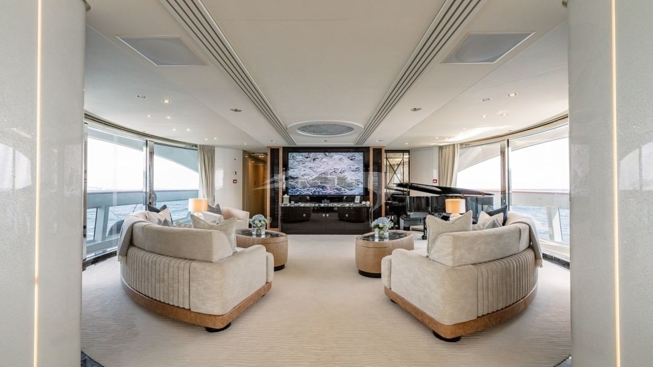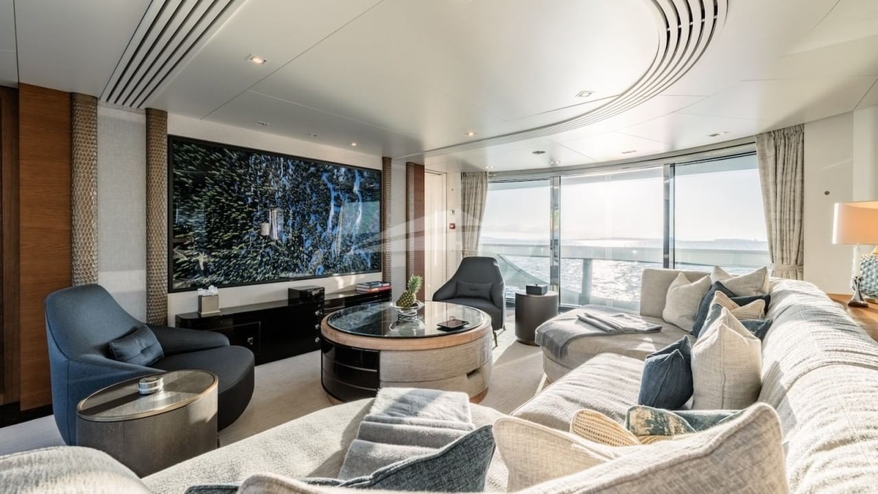 Accommodation is both flexible and luxurious, with space for up to 12 guests across six elegant en-suite staterooms. The master suite offers complete privacy, with two private balconies featuring sunbeds, a private office, and a spacious lounge and bathroom. A full-beam VIP stateroom can be converted into two double cabins, offering versatility for families or mixed groups.