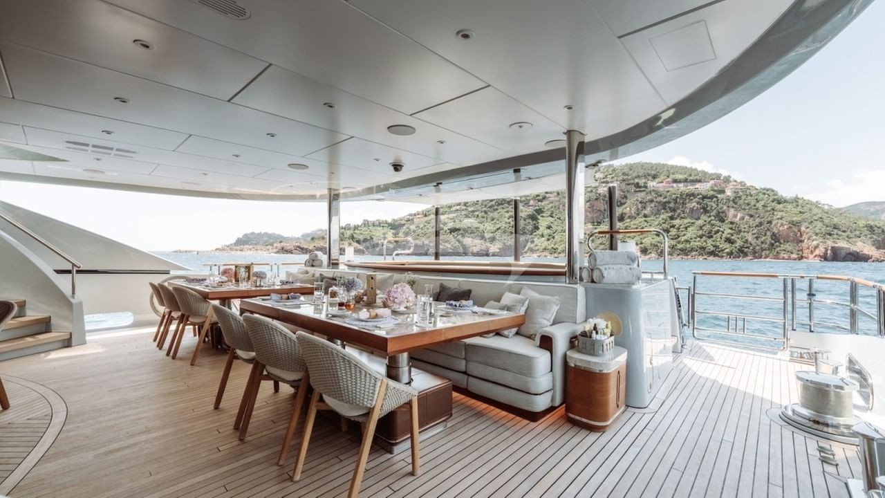 Yacht is extremely versatile, with adjustable tables and seating areas throughout (can change from sun pads, to coffee table set up, to table for a formal meal).